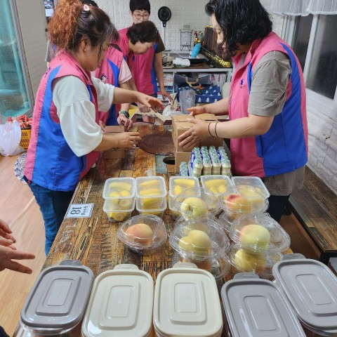 (7.17.), 미탄면생활개선회(회장 김은화) 회원 10여 명은 한부모가정과 홀몸 어르신 가정에 과일을 전달하는 봉사활동을 실시했다.