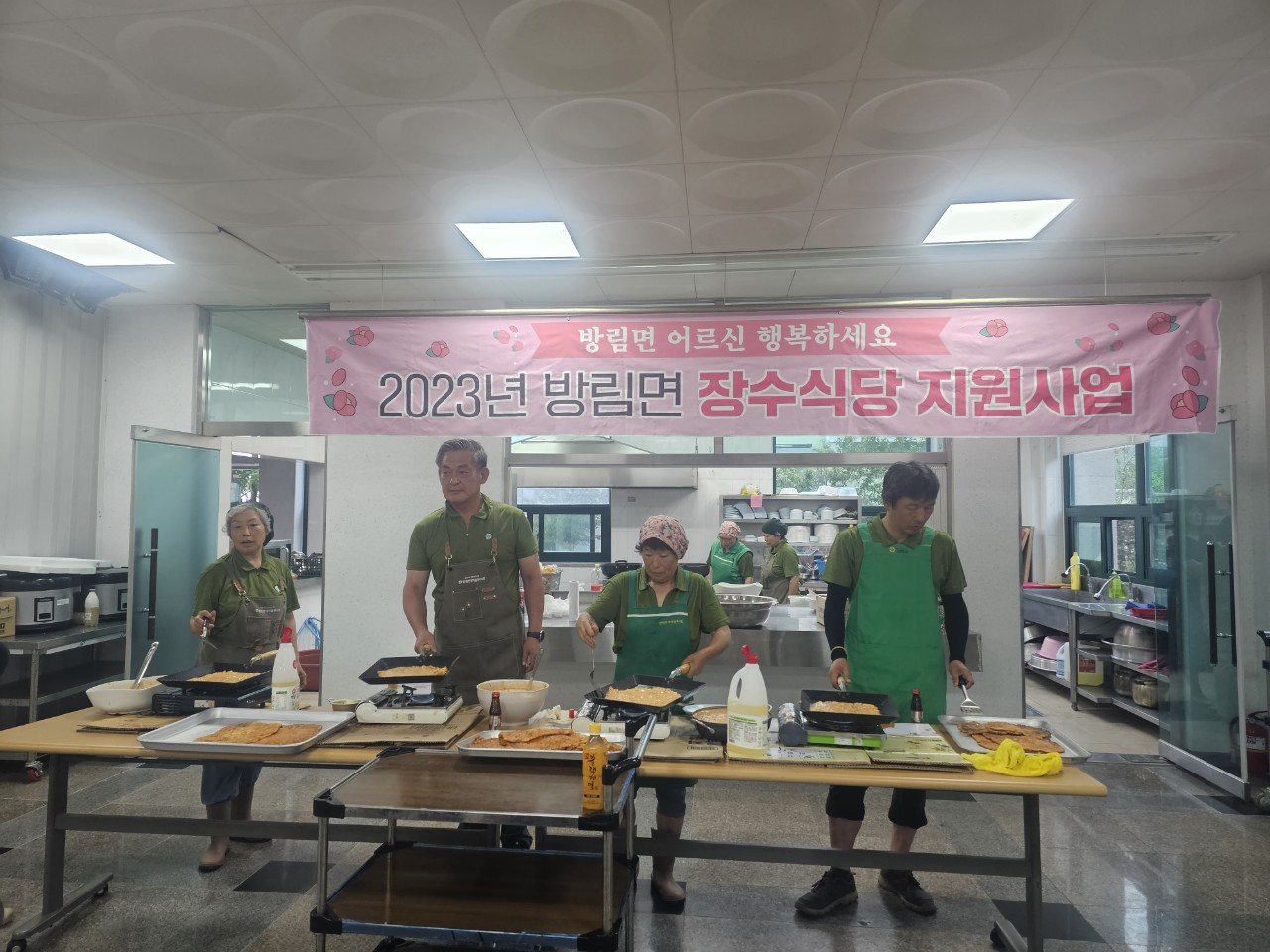 (7.14.) 11:00, 방림면새마을지도자남여협의회(회장 경민수, 이영희)는 방림복지회관에서 장수식당 운영하며 이른 아침부터 정서껏 준비한 밑반찬 및 보양식 삼계탕을 지역 어르신 109명에게 대접했다.
