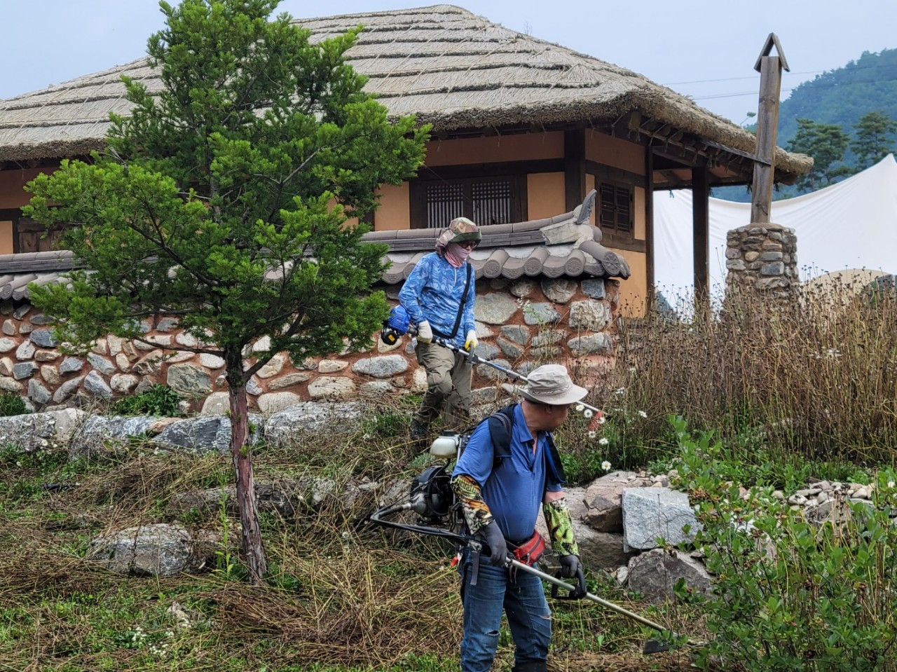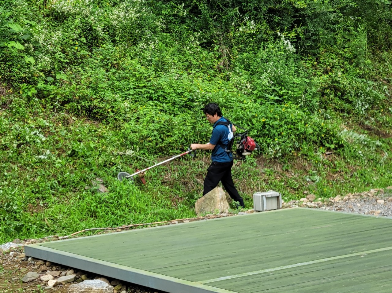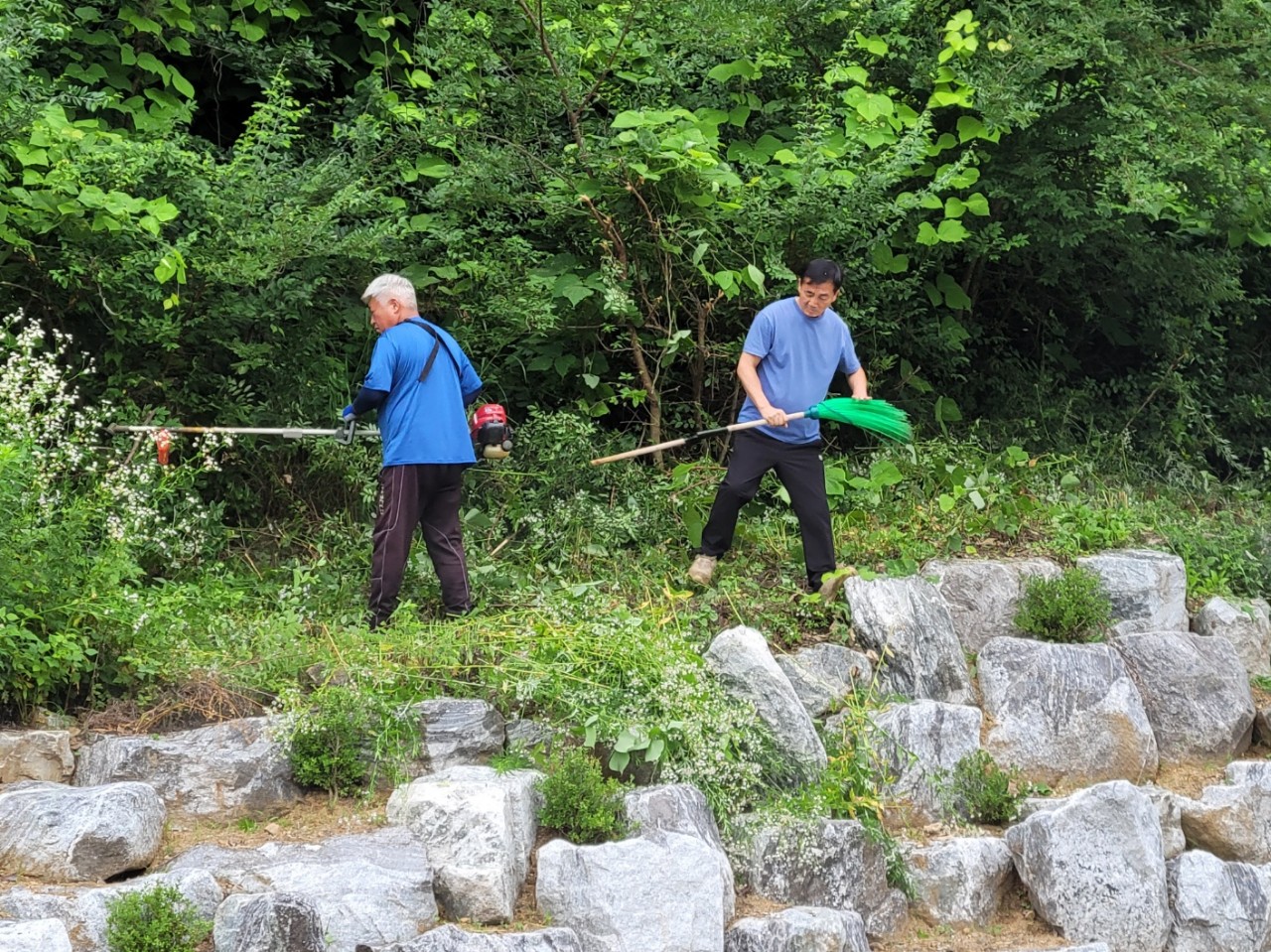 대화면 주민들은 연일 평창더위사냥축제장이 있는 땀띠공원으로 나와 축제장 정비에 힘을 쏟고 있다.