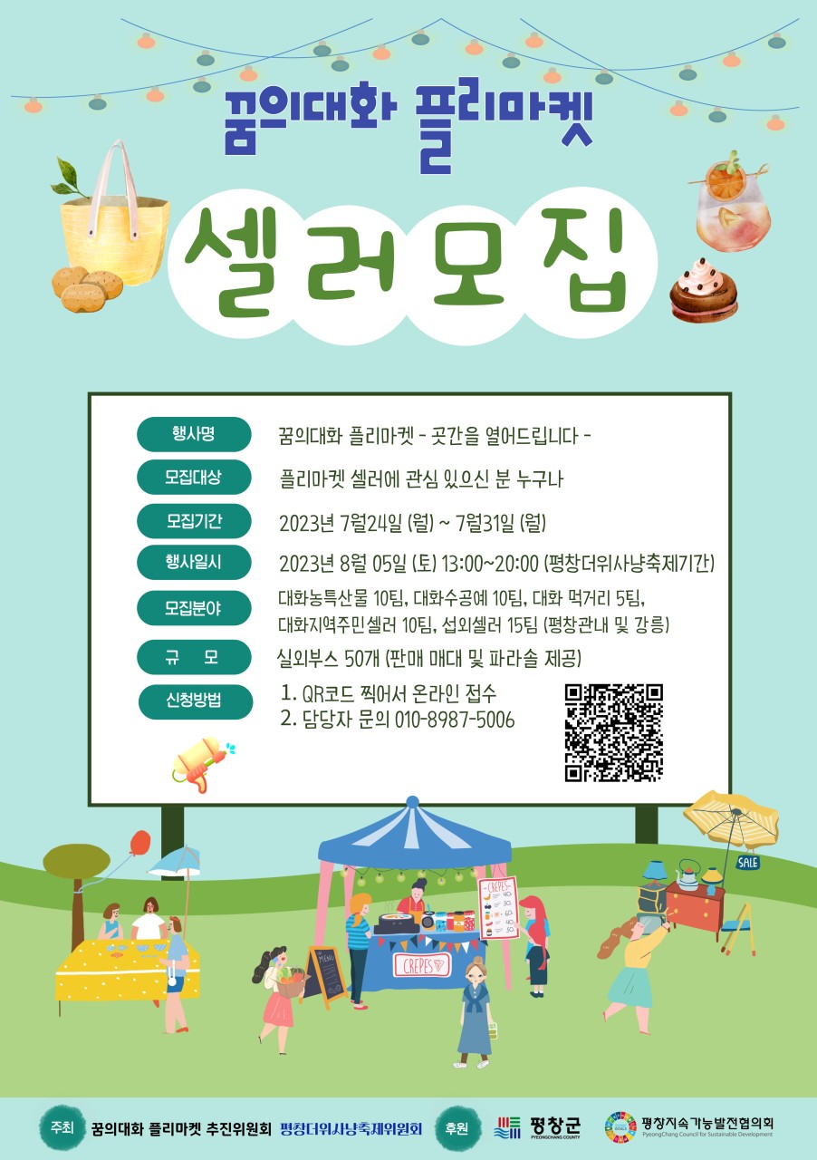 더위사냥축제 기간인 8월5일에는(토요일 13:00~20:00) 대화지역주민의 주도로 만들어내고 샐러로도 참여할 수 있는 “꿈의대화 플리마켓”이 진행된다. 대화주민들이 참여하고 만들어가는 프리마켓은 대화에서 생산되는 지역농특산물, 가공품, 수공예품, 생활용품, 중고용품 등 주민들이 만들어 내는 평창의 색깔이 담긴 로컬마켓이 될 것으로 기대되고 있다.
