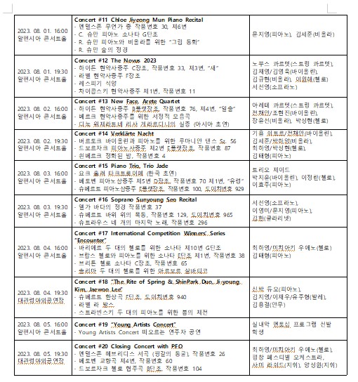 제20회 평창대관령음악제에서는 우크라이나 전쟁으로 현재 피난 상황에 처해있는 ‘키이우 비르투오지(Kyiv Virtuosi) 스트링 오케스트라’ 초청 공연이 예정되어 있으며, 이 외에도 총 20회의 콘서트, 8회의 찾아가는 음악회와 대관령아카데미 및 올해 새롭게 선보이는 찾아가는 가족음악회 등이 8월 5일까지 평창 일원에서 펼쳐진다. 자세한 사항은 평창대관령음악제 홈페이지(mpyc.kr)에서 확인하거나 운영실(033-240-1364)로 문의하면 된다.