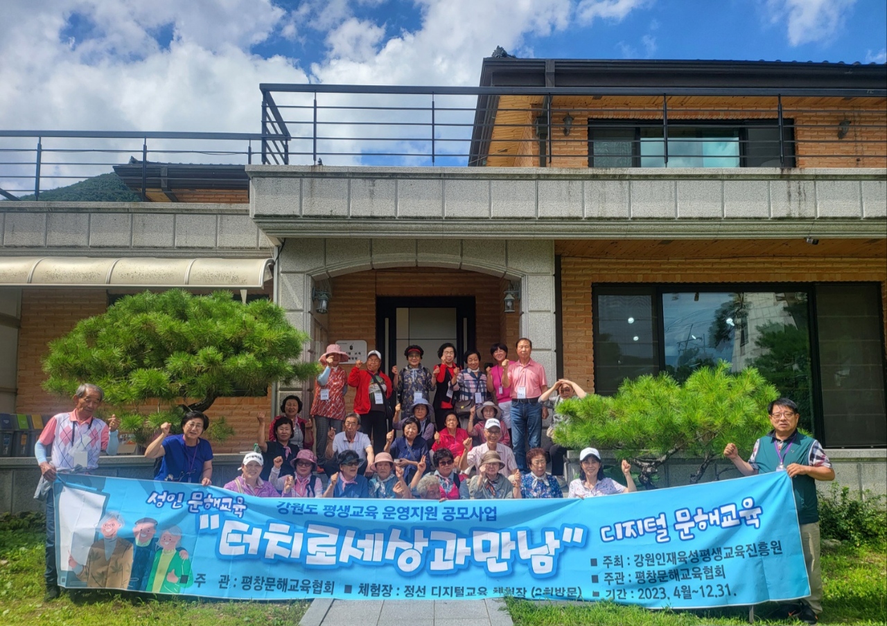 평창문해교육협회는 강원인재육성평생교육진흥원 주관‘2023 강원도 평생교육 운영지원 공모 사업’에 선정되어 성인문해교육 사업, 생활문해교육 ‘터치로 세상과 만남’을 진행했다고 밝혔다.
