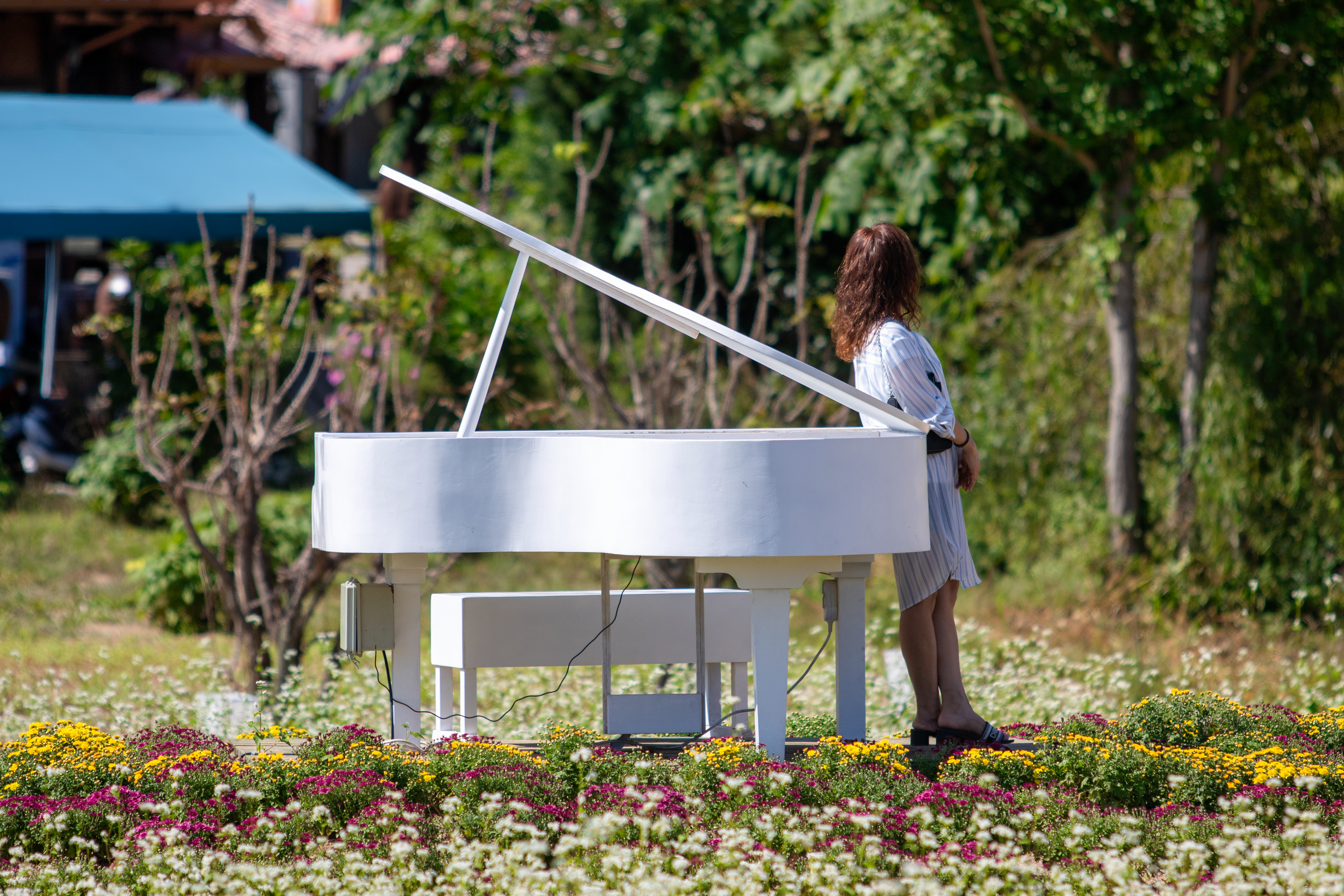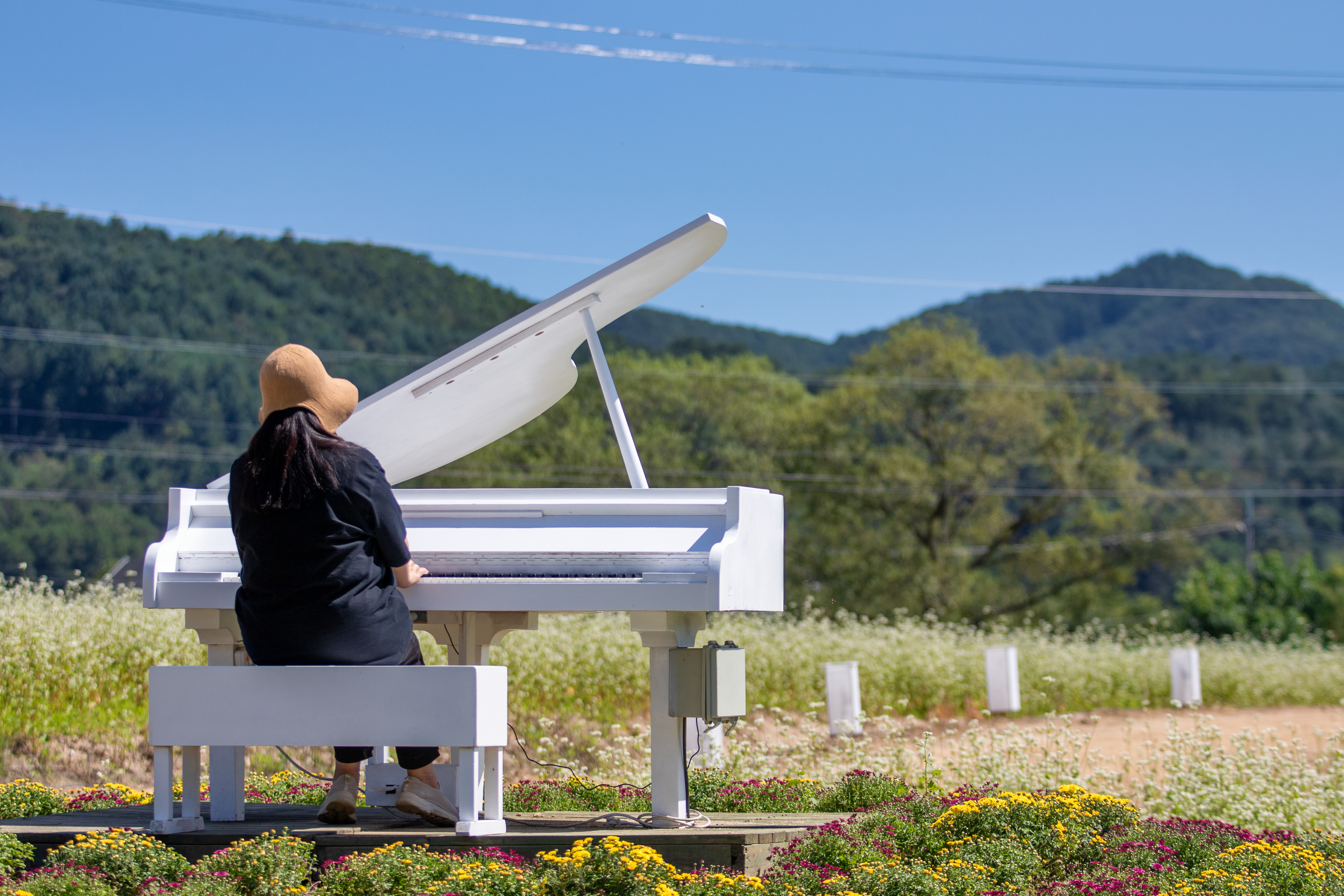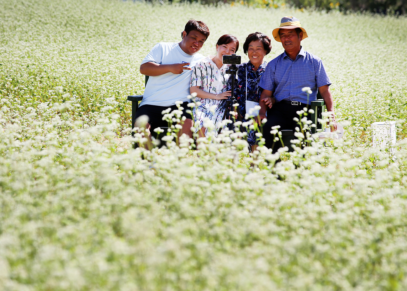 8일 오후 효석문화마을 일대에서 개막한 2023평창효석문화제를 찾은 신혼부부가 메밀꽃밭에서 자신들만의 추억을 남기고 있다.
