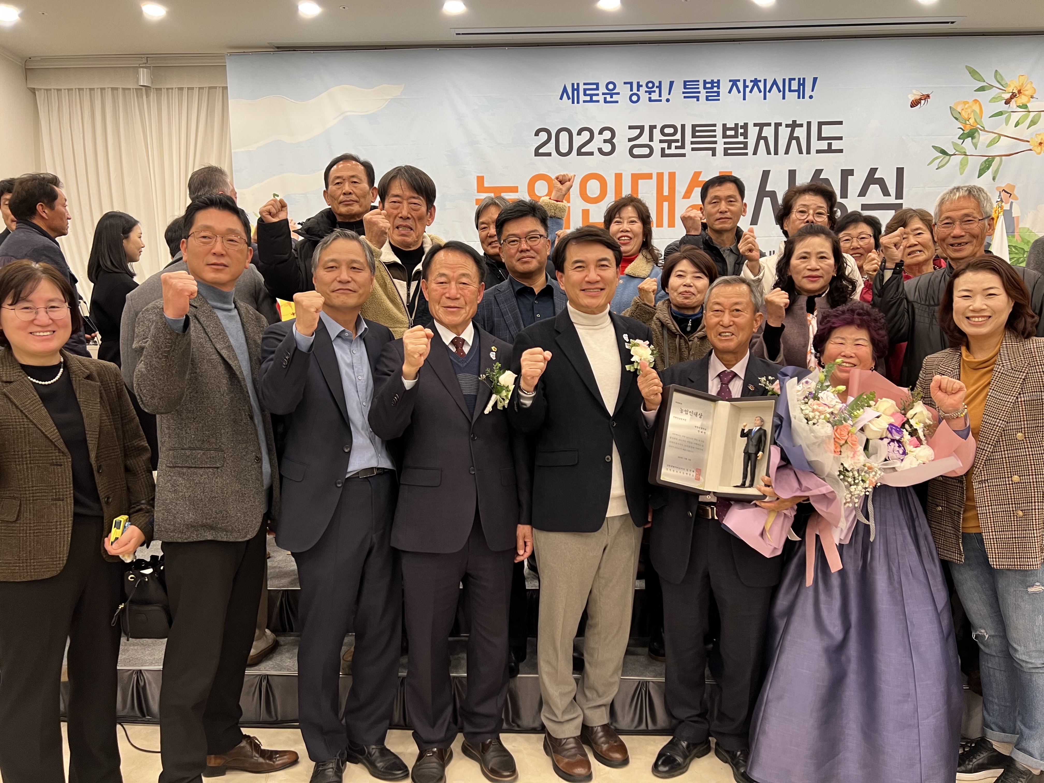 춘천 세종호텔에서 개최된 ‘2023년 강원특별자치도 농업인대상’에서 친환경농업 부문에 평창읍 농가 전대영 씨가 수상했다.
