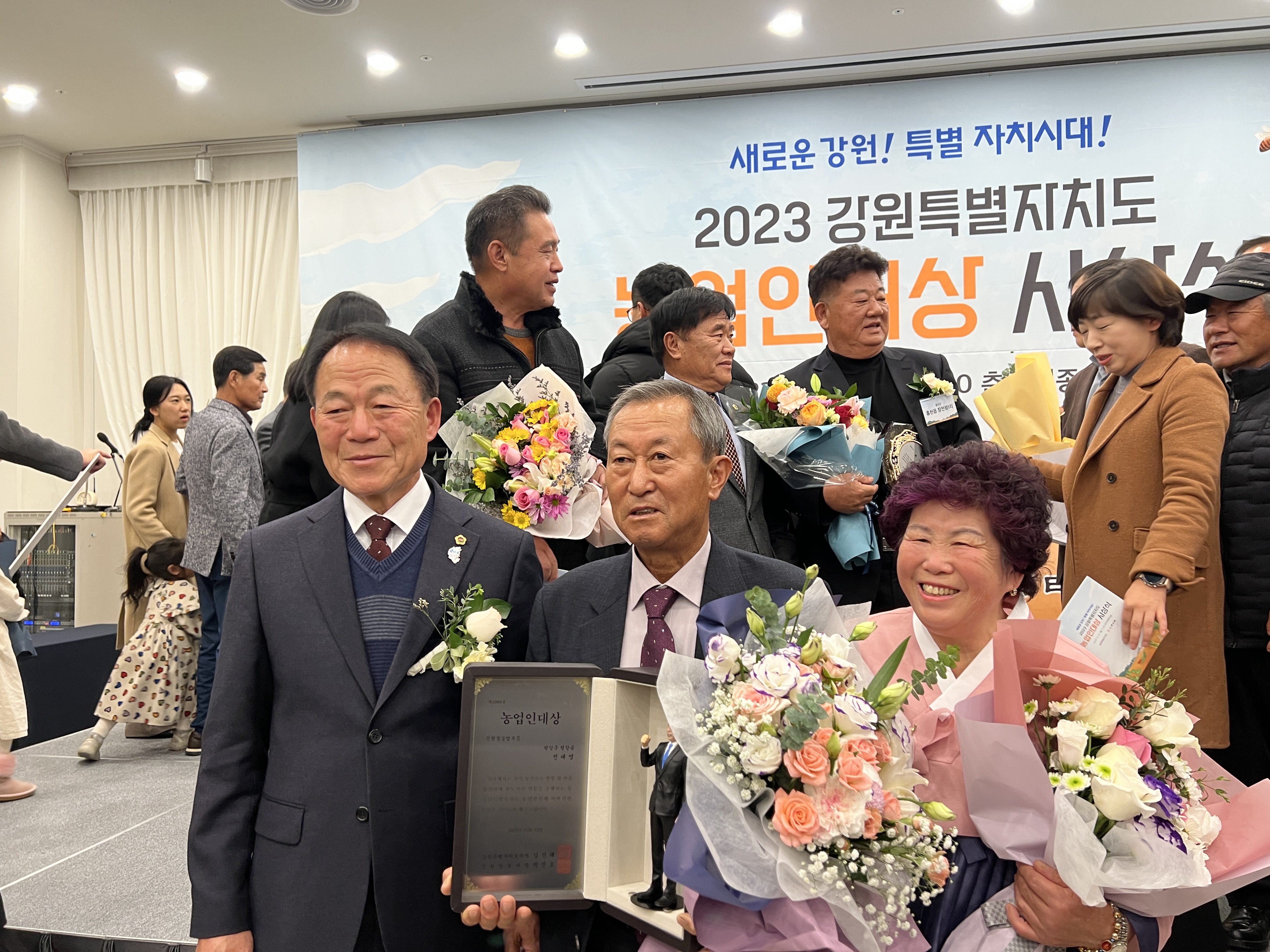 춘천 세종호텔에서 개최된 ‘2023년 강원특별자치도 농업인대상’에서 친환경농업 부문에 평창읍 농가 전대영 씨가 수상했다.