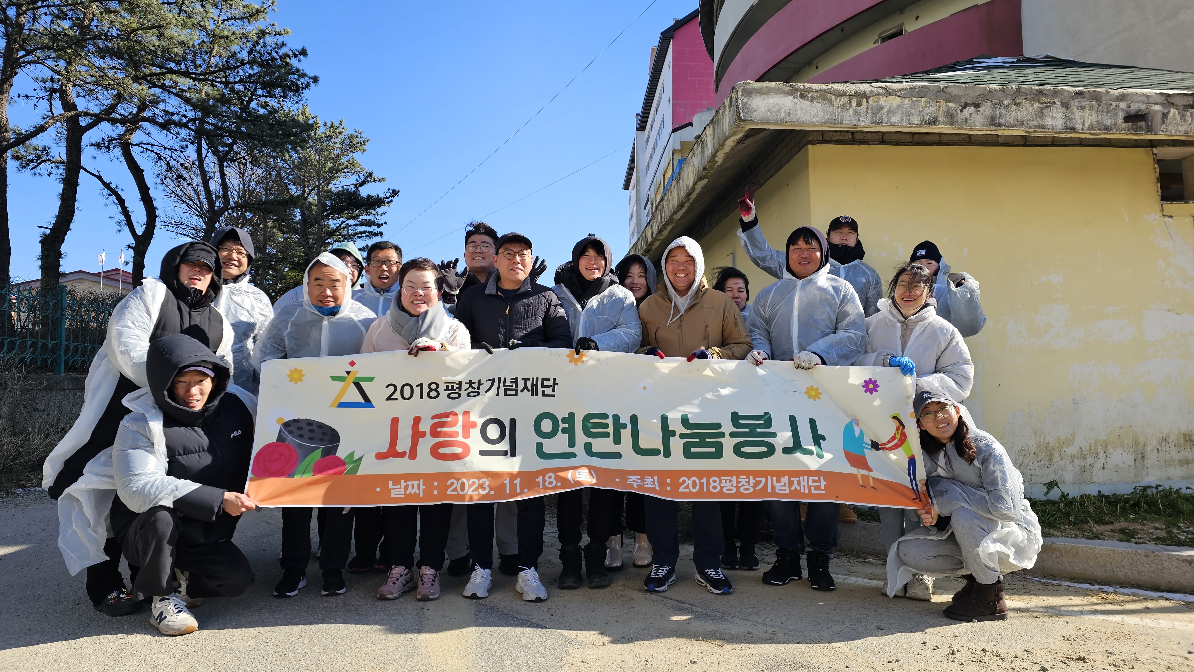 지난 11월 18일(토) 2018평창기념재단 임직원이 평창군 대관령면 취약계층 어르신들의 따뜻한 겨울을 위해 연탄 1,200장을 준비하고 사랑의 연탄 나눔 봉사활동을 펼쳤다. 이날 행사에는 강성구 2018평창기념재단 사무처장을 비롯해 재단 직원 30여명이 참석했다. 어려운 이웃들이 추운 겨울을 따뜻하게 보낼 수 있기를 바라는 마음을 담아 가구별로 직접 연탄을 배달했다.