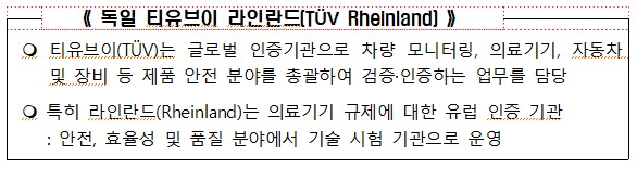- 최근 강해지고 있는 유럽 인증 규제에 대한 정보 공유, 교육 협력과 공동 연구개발 등 국내 의료기기 기업들의 애로사항을 해결하고, 규제에 대응하여 기업들의 체계적 인증지원을 공동 지원할 계획이며,