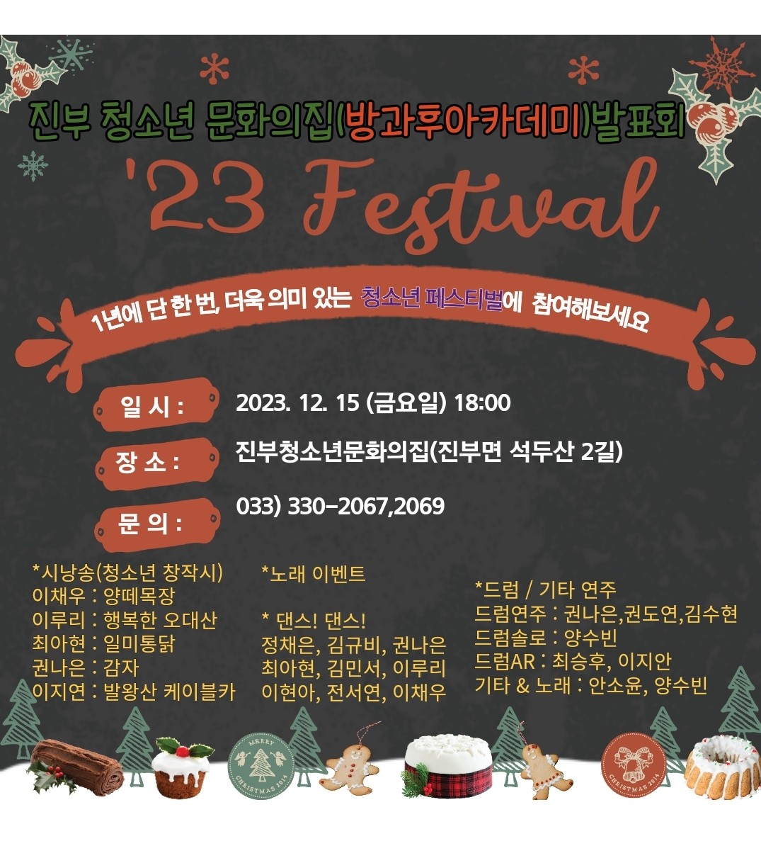 안녕하세요 청소년을 위한 곳~~ 청소년 문화의집(방과후아카데미)에서 1년을 마무리하면서 발표회를 합니다 많이 참석하셔서 사랑과 격려 부탁드려요.글: 박미숙님