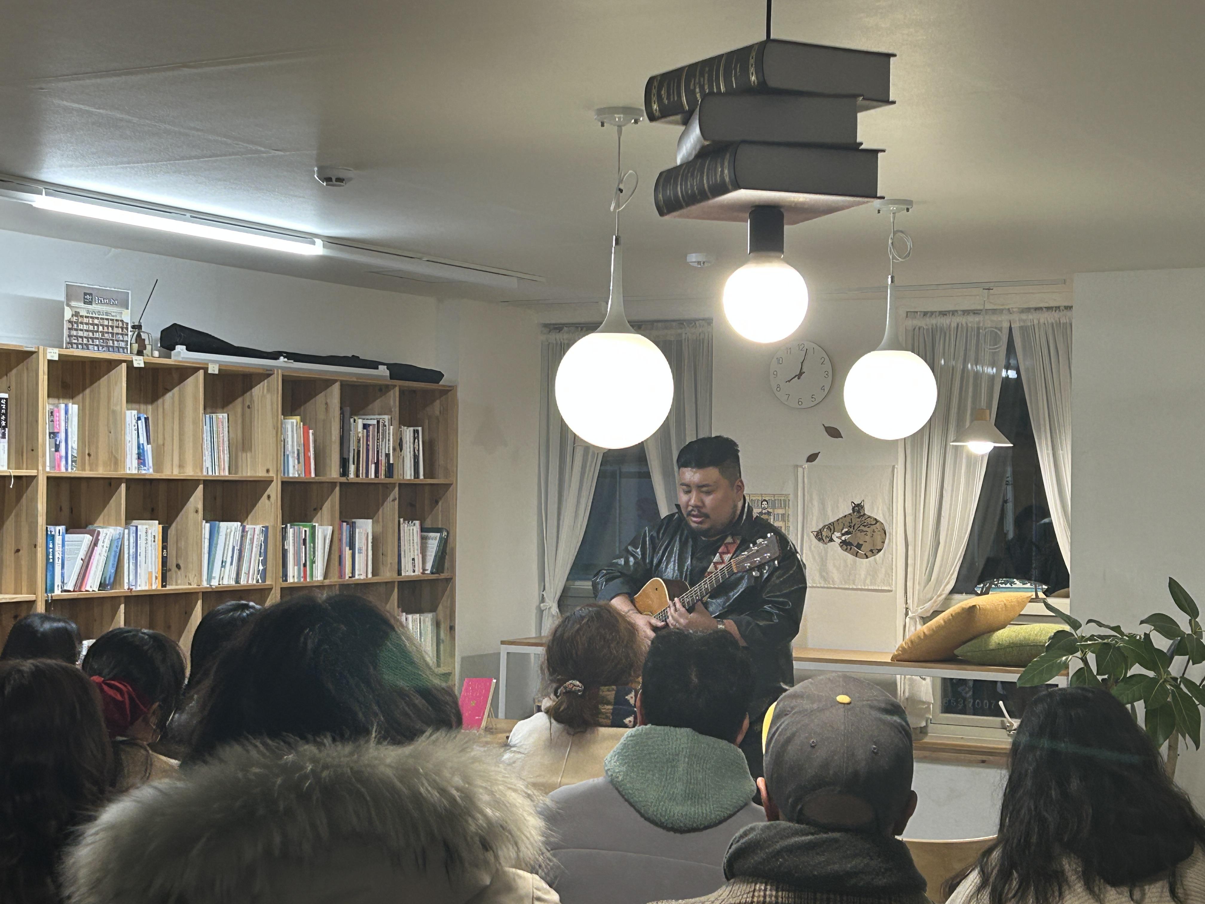 강백수 작가와 책방 ‘당신의 강릉’ 김민섭 대표가 자비로 시집을 구매해 관객들에게 선물을 주었습니다. 또, 시인이자 가수로 활동하고 있는 강백수 작가는 심금을 울리는 음악으로 따뜻한 감동을 선물했습니다. 공간과 차는 초당동의 책방 ‘아물다’에서 후원해 주었습니다.