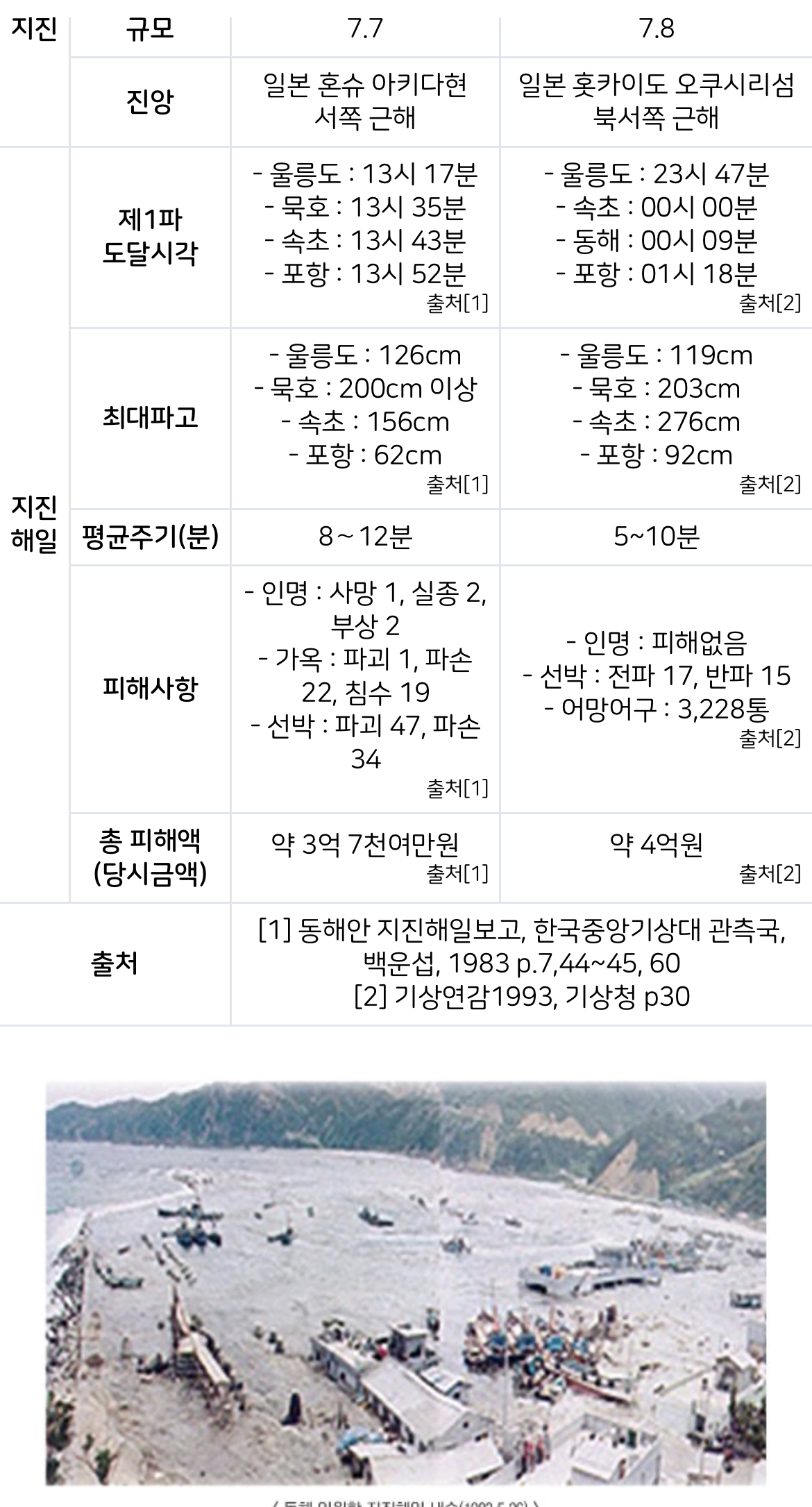 일본에서 지진이 발생하여 한국에도 지진해일 영향이 있다고 하여 과거 피해 사례를 올려드립니다.