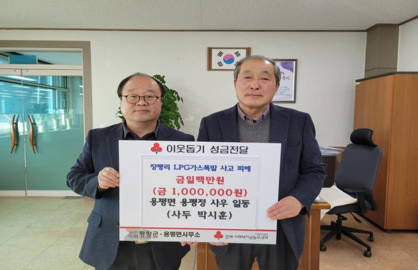 평창군의회(의장 심현정)도 2024년 2월 12일 평창군 군수 집무실을 방문하여 용평면 장평리 일대에 발생한‘LPG가스폭발 사고’피해주민들을 위해 써달라며 평창군에 성금 200만원을 전달했다.