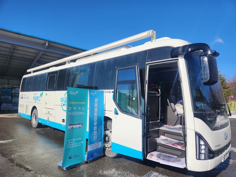 또한, 1. 10.(수) 강원권트라우마센터(국립춘천병원)와 협력하여, 평창군 용평면 장평리(봉평농협 장평지점 농협집하장)에서 피해주민을 대상으로 마음안심버스 운영 및 마음구호키트를 지원하였다.
