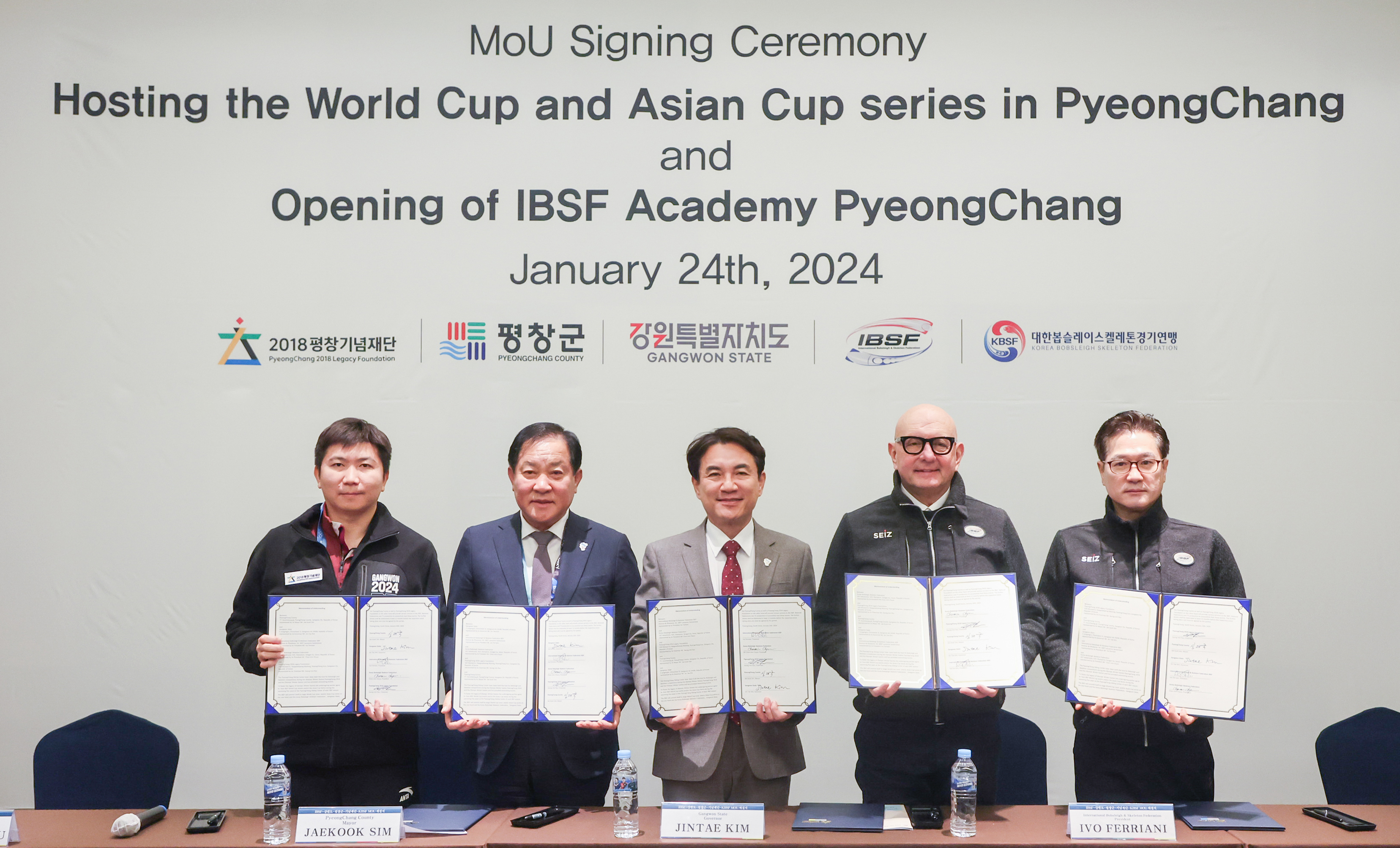 강원특별자치도, 평창군, 국제봅슬레이연맹(이하 IBSF)이 주최하고 대한봅슬레이스켈레톤경기연맹(이하 KBSF)과 2018평창기념재단이 주관하는 ‘올림픽 슬라이딩센터 활성화를 위한 관계기관 업무협약’이 1월 24일 강원특별자치도 평창 알펜시아 컨벤션센터에서 개최됐다.