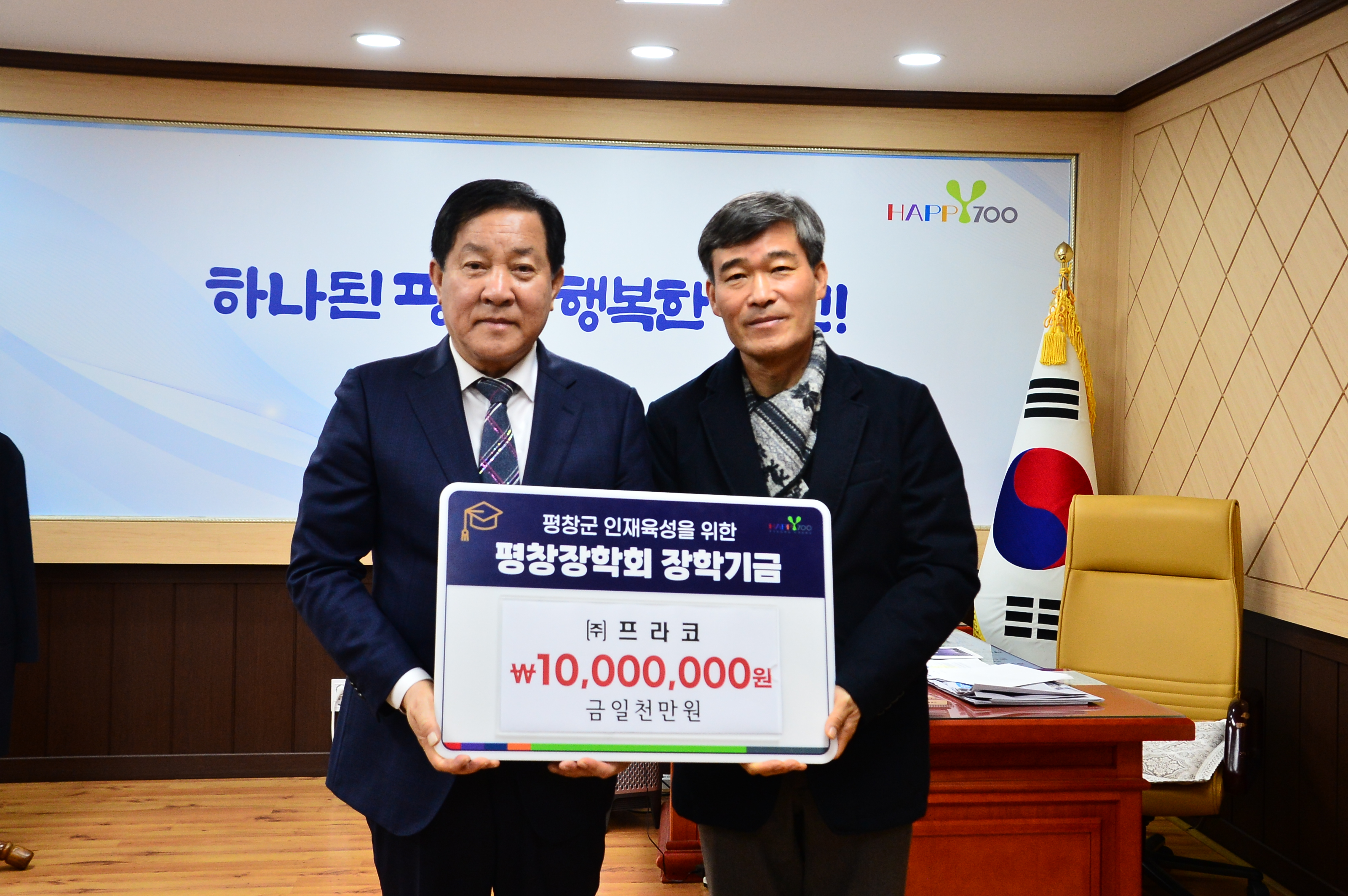 배경미 ㈜프라코 대표는“지역에서 받은 사랑을 지역에 환원하고자 하는 마음에서 평창장학회에 장학금을 기부하게 되었다.”라며 “후원받은 학생들이 지역사회에 보답할 수 있는 인재로 성장하길 바란다.”라고 밝혔다.