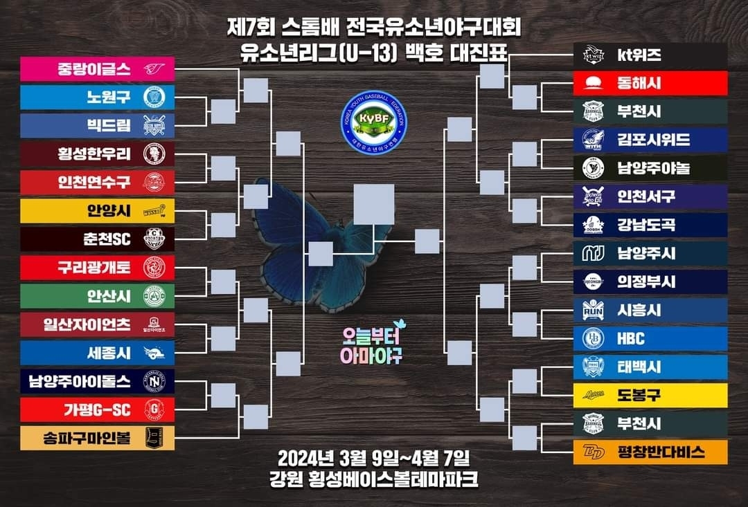 평창반다비스야구단 유소년팀이 강원도 횡성에서 개최되는 제7회 스톰배(한국유소년 야구연맹)에서 9일 부천시 유소년팀과의 첫 경기를 시작으로 24년 시즌을 시작한다. 일반부 성인팀은 인천에 캠프를 꾸리고 실업야구와 KBSA리그를 준비하고 있다. U-15, U-18 창단 준비도 진행 중에 있어서 올해도 반다비스의 모든 일정들이 흥미롭기만 하다.자료출처 : 한국유소년야구연맹