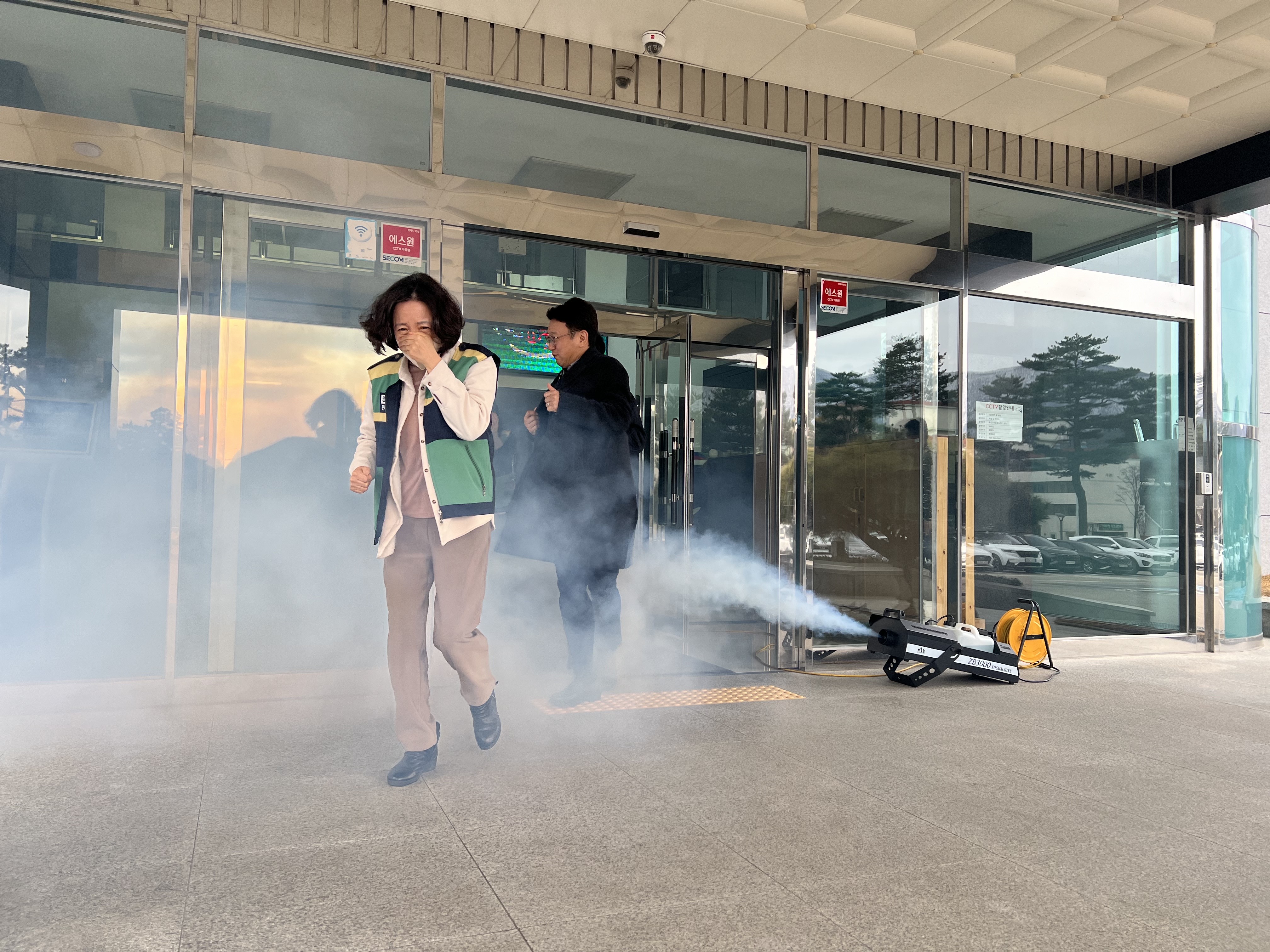 김은규 안전교통과장은“화재발생 시 신속한 대피가 가장 중요하다며, 실제상황을 가정하여 반복하여 훈련하는 것이 가장 중요하다.”라고 말했다.