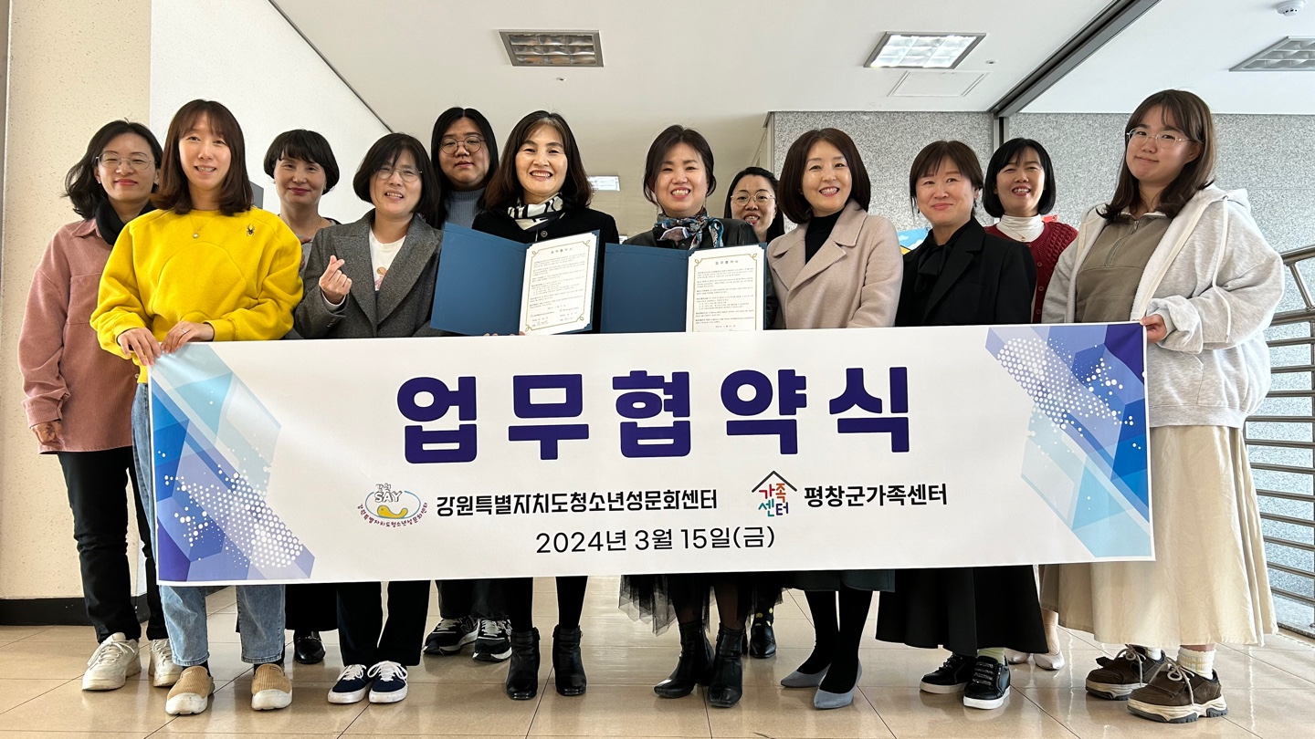 15일, 강원특별자치도청소년성문화센터(센터장 김태연)와 평창군가족센터(센터장 최미자)는 아동· 청소년에 대한 서비스 향상을 위한 업무협약을 체결했다고 밝혔다.