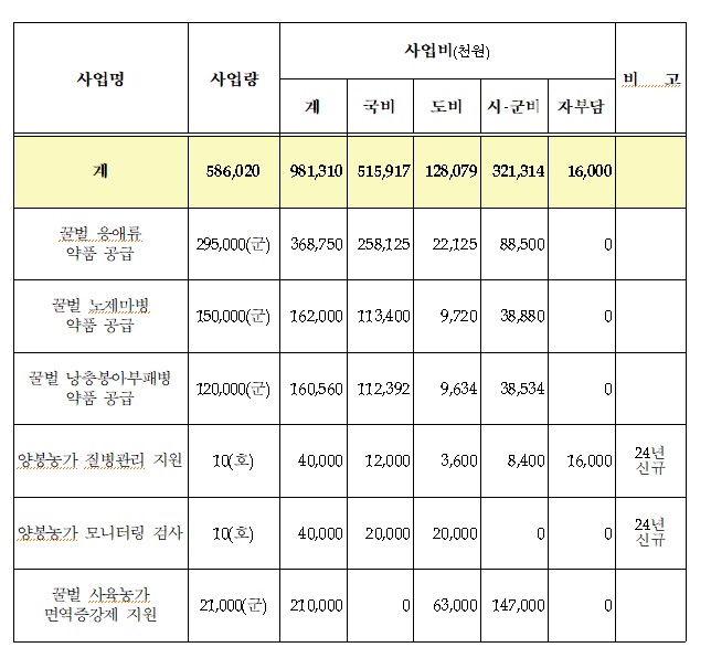 다만 동물용의약품으로 허가된 제품에 한하여만 지원하며, 꿀벌응애에 저항성이 있다고 보고된 플루발리네이트성분의 제품은 제외된다.