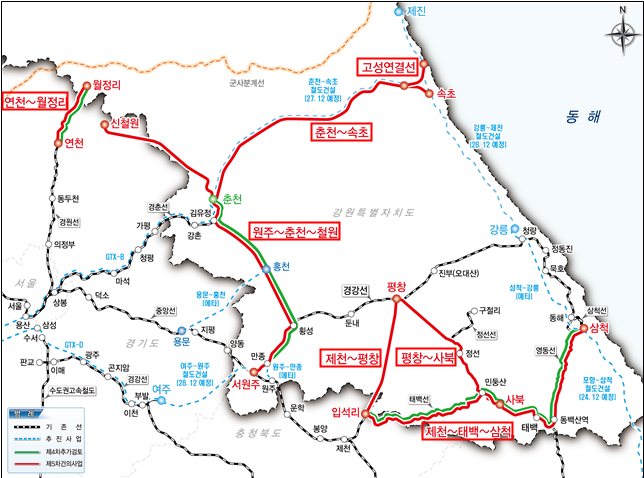 강원지역 동서 남북간 양방향 직결노선이 구축