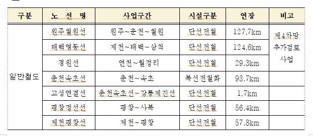 ⑤ 평창~사북 철도(56.4km 단선전철 고속화) 청량리~정선구간까지