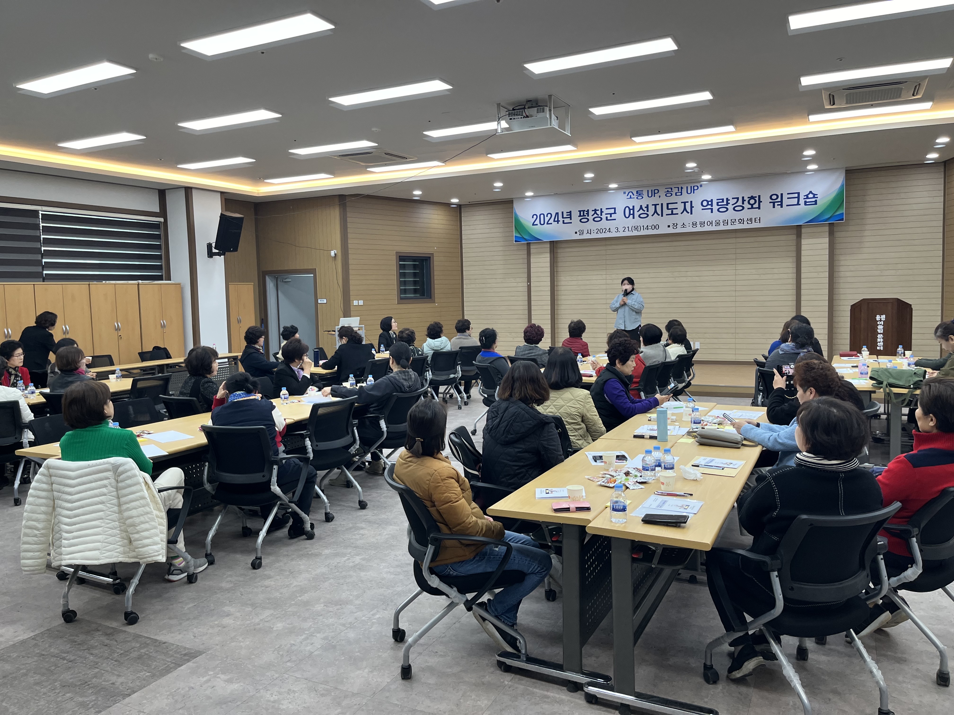 평창군여성단체협의회(회장 조혜경)는 21일 용평어울림센터에서 여성단체협의회 회원 50여 명이 참여한 가운데‘소통 UP, 공감 UP’이란 주제로 2024년 평창군 여성단체 지도자 역량강화 워크숍을 실시했다.