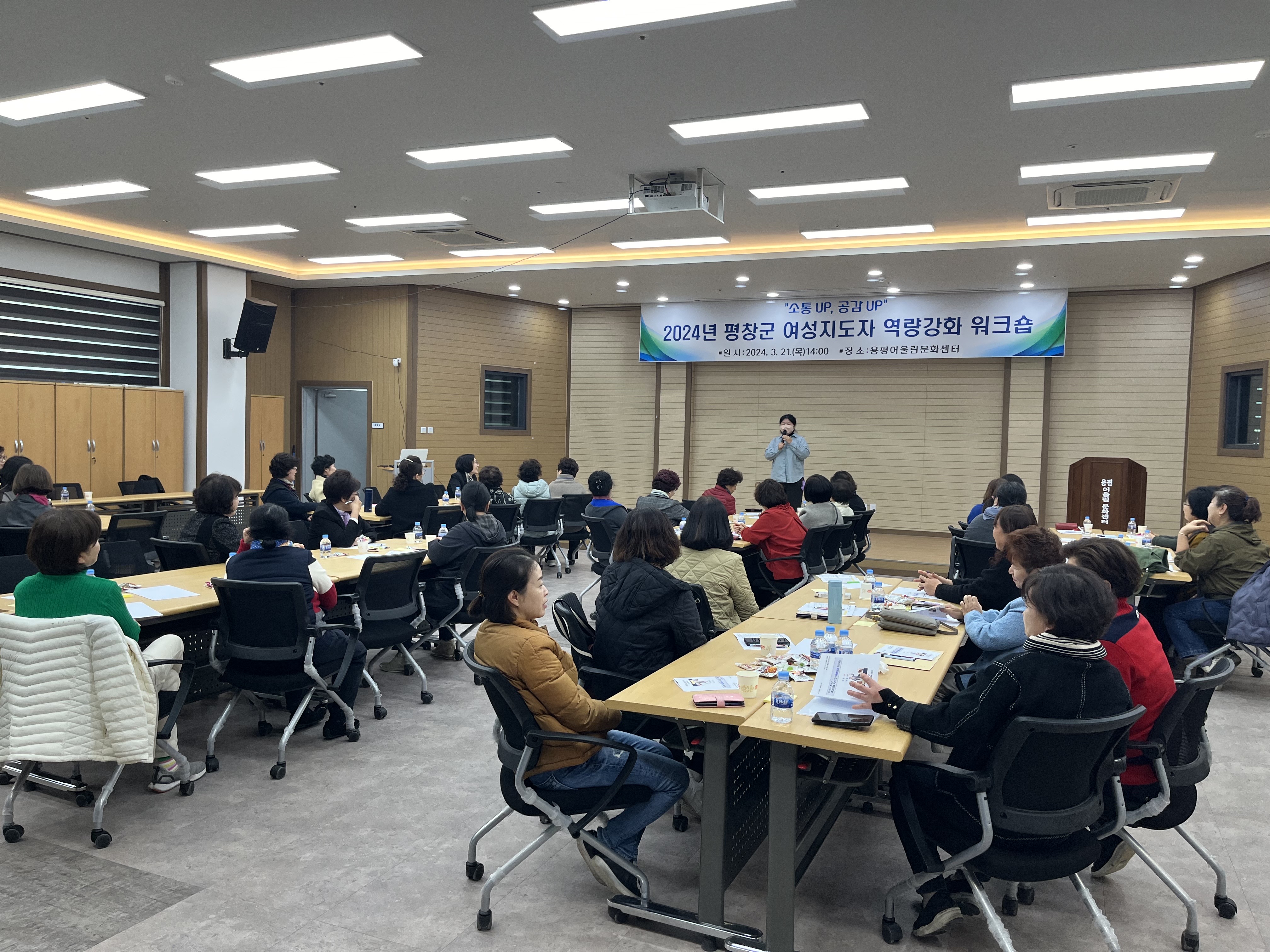 평창군여성단체협의회(회장 조혜경)는 21일 용평어울림센터에서 여성단체협의회 회원 50여 명이 참여한 가운데‘소통 UP, 공감 UP’이란 주제로 2024년 평창군 여성단체 지도자 역량강화 워크숍을 실시했다.