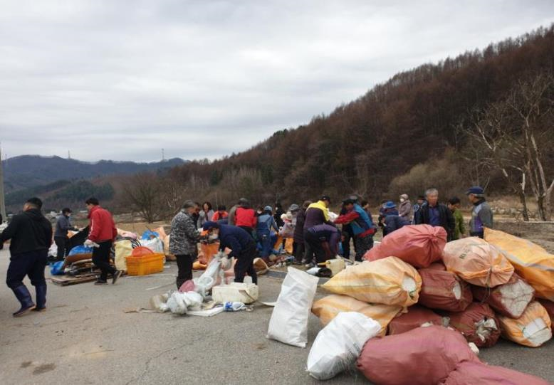 어제(4.4.), 봉평면 면온2리 마을(이장 이희승) 주민 약 70명은 따뜻봄을 맞아 겨우내 마을 곳곳에 버려진 쓰레기를 줍고 분리 수거를 실시하여 깨끗한 마을 만들기에 앞장섰다.