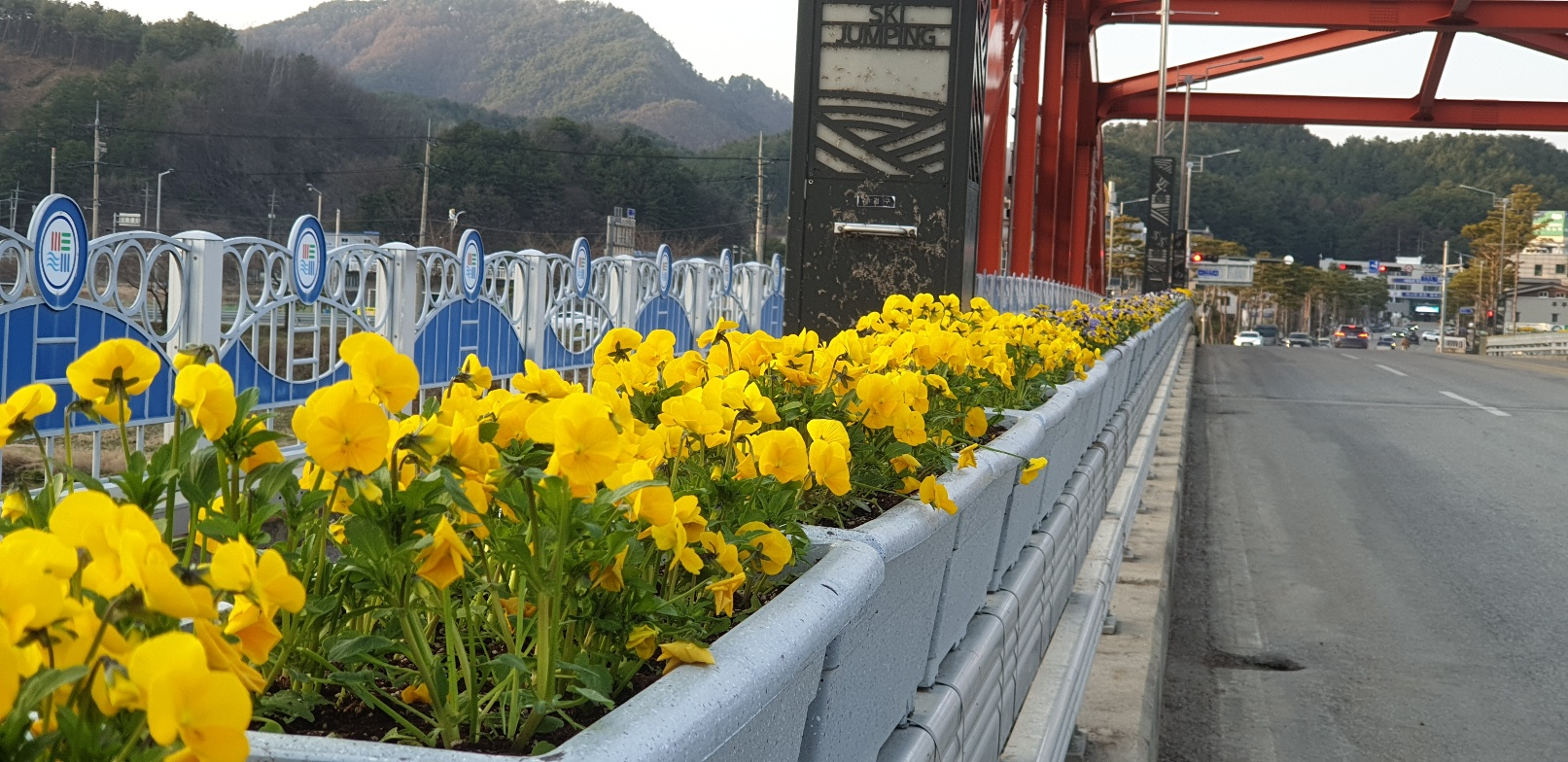 평창읍은 4월부터‘2024년도 국토공원화사업’의 일환으로 평창읍 시가지, 마을길, 도로 교량에 봄꽃으로 계절꽃, 야생화, 꽃피는 관목 등 비올라 10,000본, 산철쭉 4,500본, 편백나무 100본, 이팝나무, 삼색버드나무 등을 식재하였다.