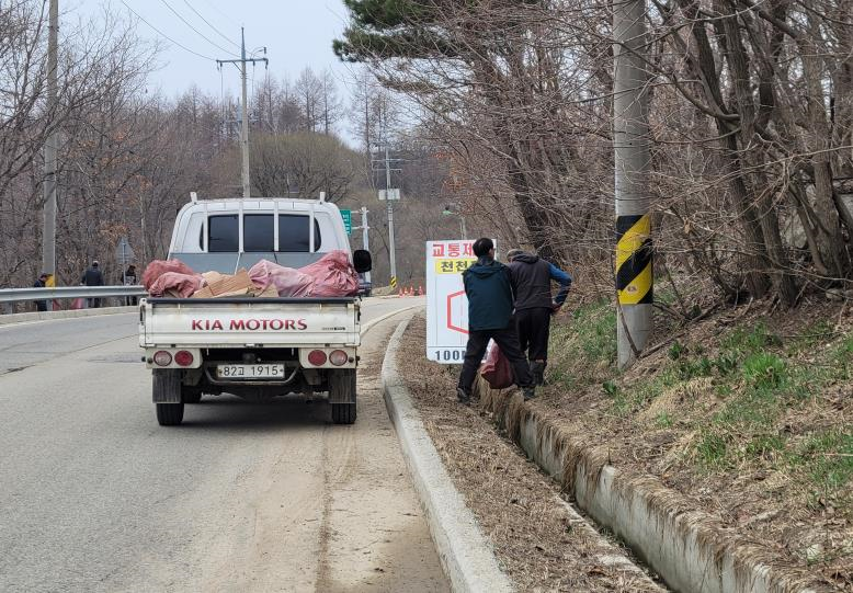 어제(4.11.), 대관령면 횡계3리(이장 전효원) 마을 주민 50여 명은 봄을 맞아 겨울 동안 쌓인 마을 내 쓰레기 수거 및 청소를 실시하였다.