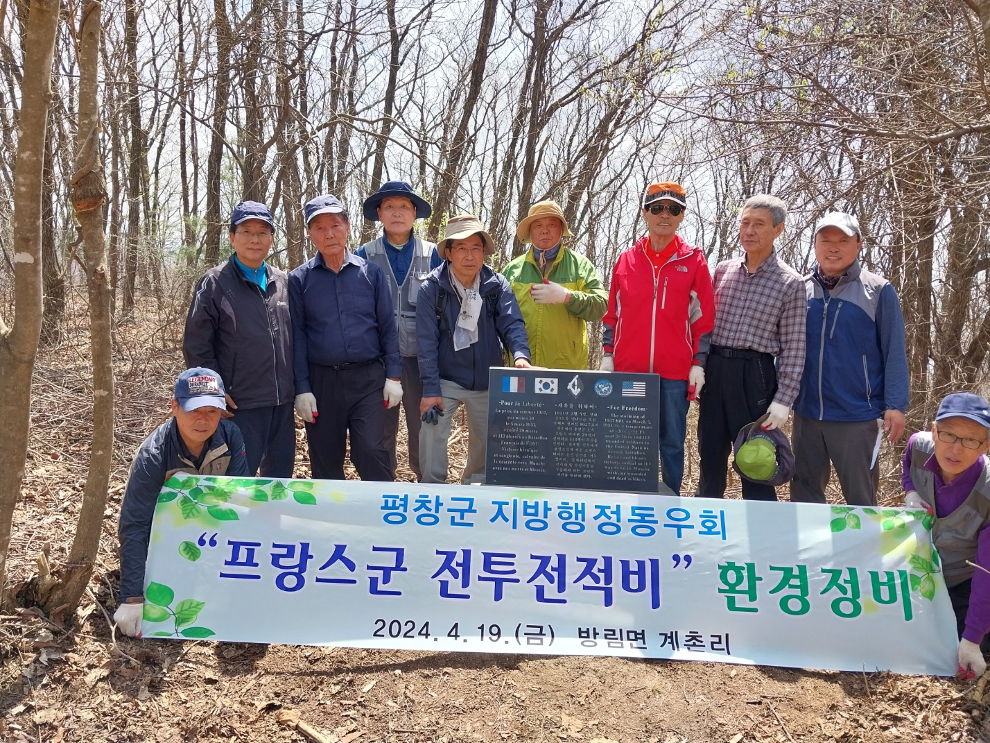평창군지방행정동우회(회장 이경식)19() 평창군 방림면 계촌리에 위치한 프랑스 전투전적비를 찾아 주변 제초작업을 실시하고 참배하였다고 밝혔다.
