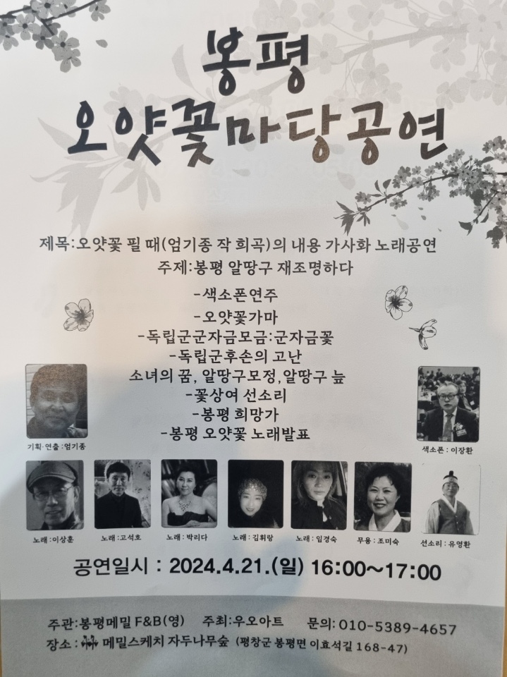 지난 4월 21일 평창군 봉평면 자두나무숲(메밀스케치)에서 봉평 오얏꽃 마당공연이 펼쳐졌다.