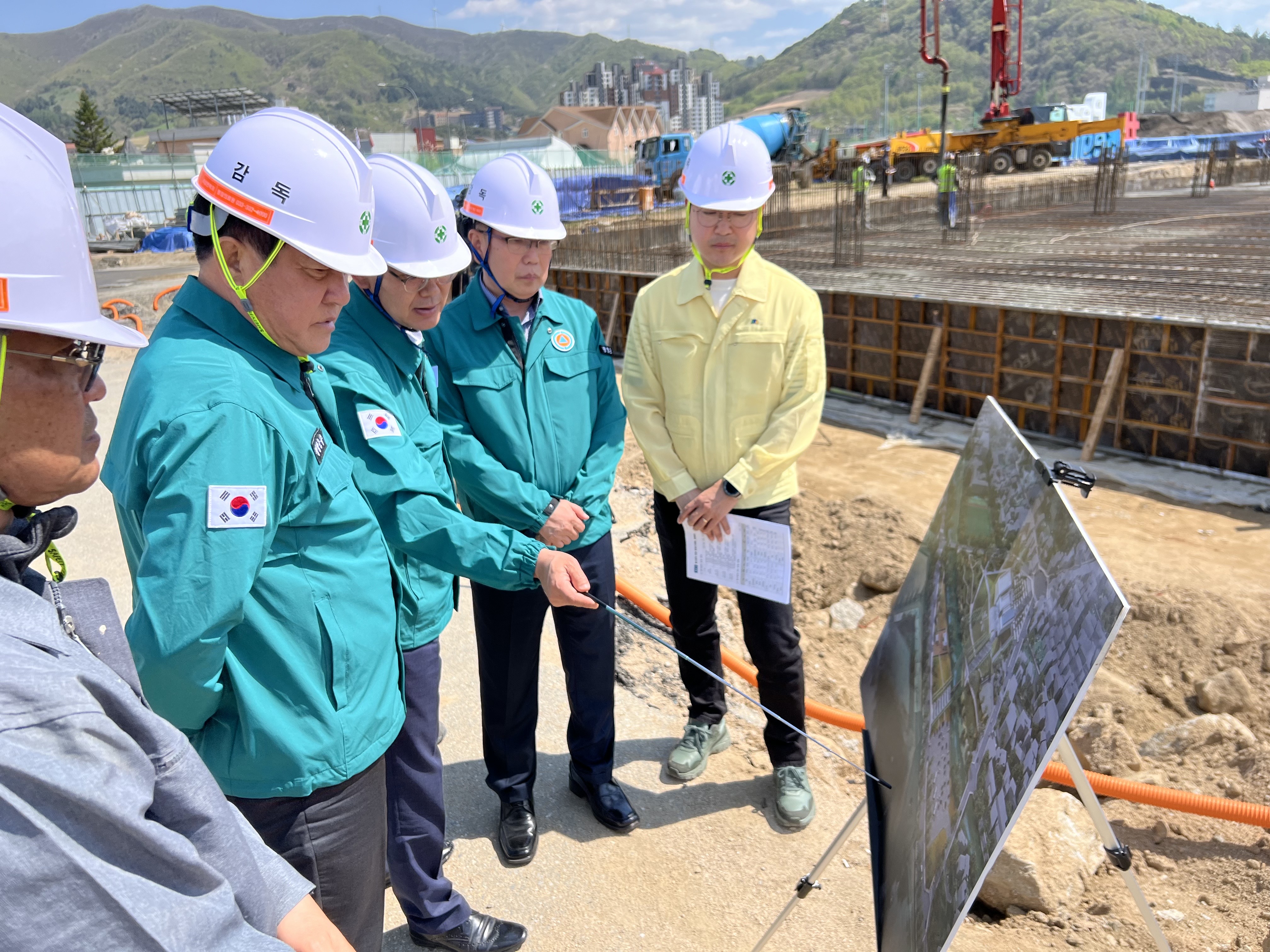 평창군에서 추진하고 있는 올림픽테마파크 ICT복합문화공간 조성을 위한 건축공사가 활발히 진행되고 있다.