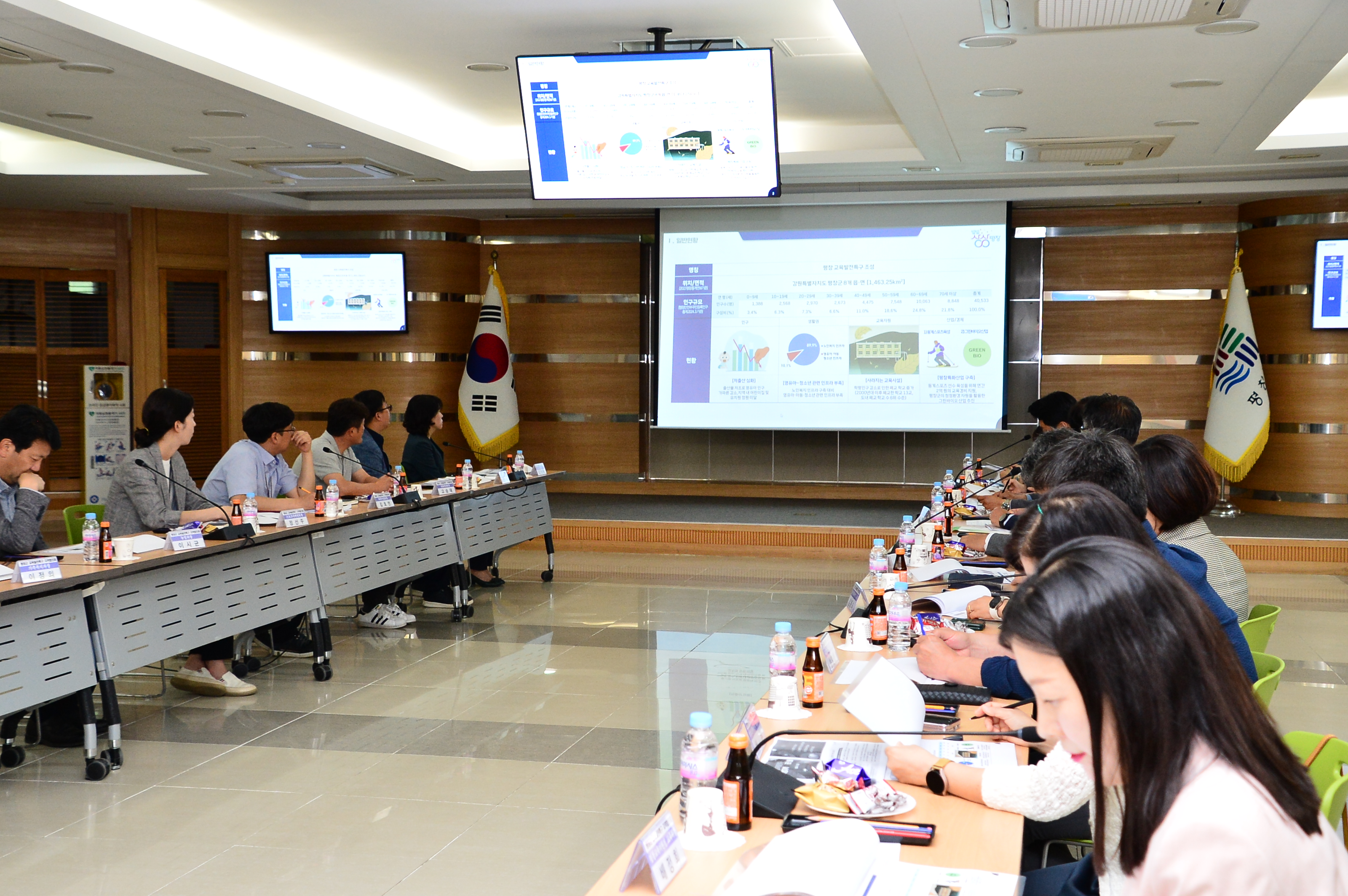 회의에는 ▲평창군 인재육성과, 올림픽체육과, 가족복지과, 관광문화과, 농정과, ▲평창교육지원청 교육과, 행정과, 관내 초·중·고등학교장, ▲평창군 의회 의원 등이 참석해 평창군 교육발전특구 운영계획 수립을 위해 많은 의견을 나누었다.