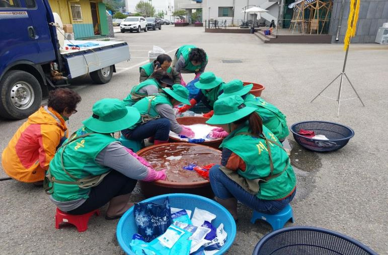 어제(4.29.), 방림면새마을지도자남녀협의회(회장 경민수, 이영희) 회원 12명은 계촌 지역에서 수거된 폐아이스팩을 세척·소독하여 농어민에게 무료 배부하며 자원 재활용 실천에 대해 홍보하였다.