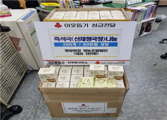 어제(5.8.), 진부면 소재 평창된장영농조합(대표 전찬동)에서 어버이날을 맞아 어려운 어르신들에게 전달해 달라며, 즉석조리식품(산채청국장) 200개를 진부면사무소에 기탁하였음.