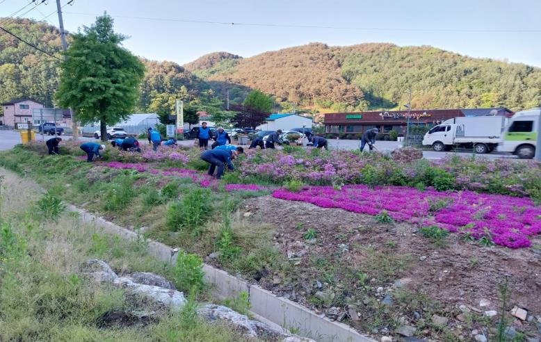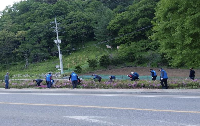 오늘(5.9.) 06:30, 평창군지방행정동우회(회장 이경식) 회원 30명은 이른 아침에도 불구하고 평창읍 상리 장암산등산로의 철쭉화단 정리와 주변 일대의 잡초를 제거하는 등 아름다운 시가지 경관 조성을 위한 환경정비 봉사활동을 실시하였음.