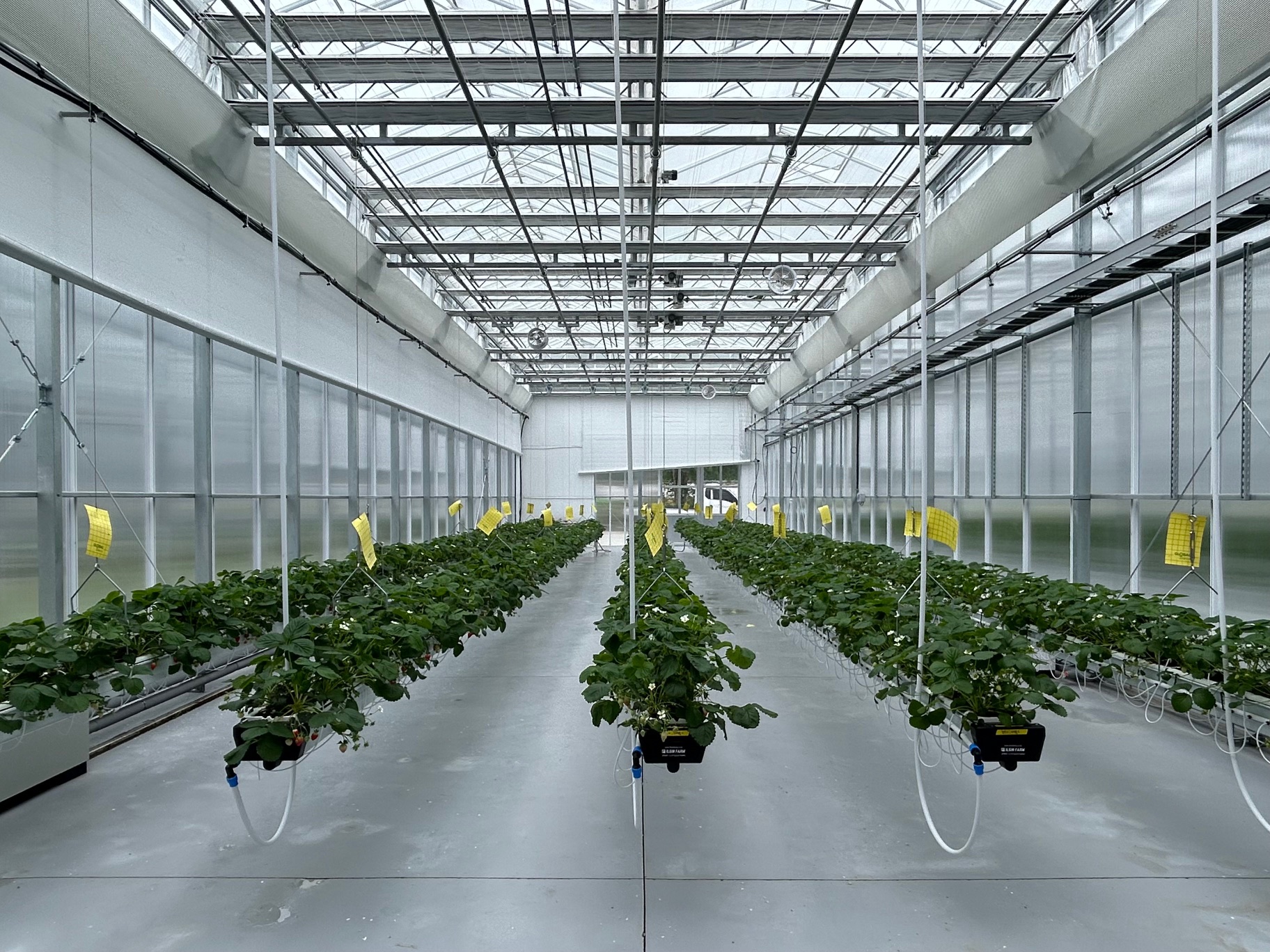 식물공장은 2개의 재배실, 기계실 등으로 조성하여 1재배실은 고추냉이를 분무경으로, 2재배실은 딸기를 배지경과 분무경으로 시험재배한다. 분무경은 공기에 노출시킨 뿌리에 영양액을 분무하여 재배하는 방식으로 토경재배와 비교하여 물과 비료 사용량을 효과적으로 줄일 수 있다. 배지경은 고형의 배지에 작물을 심어서 영양액을 공급하여 재배하는 방식으로 식물을 고정하고 토양이 갖는 이점을 이용할 수 있다.