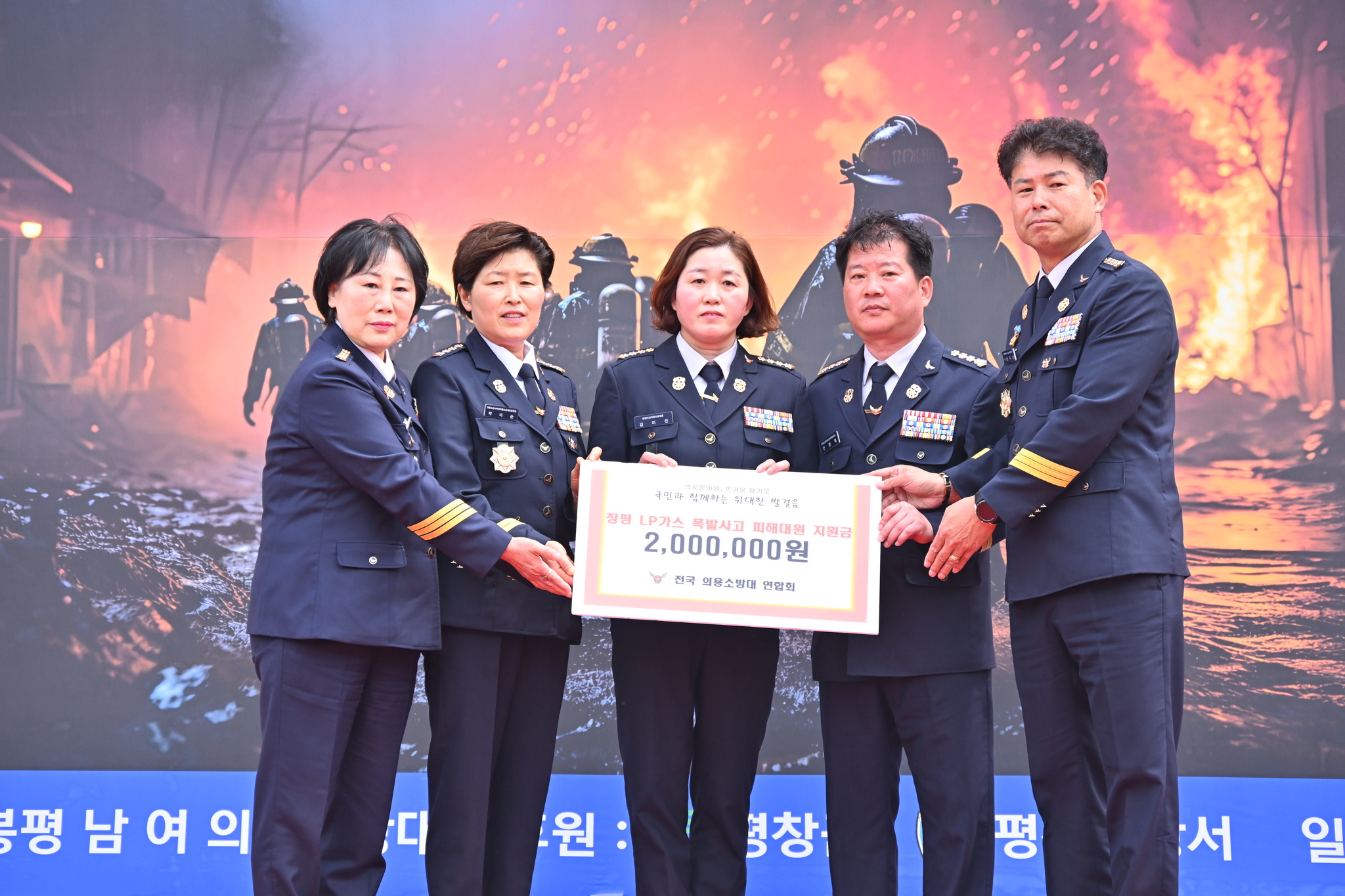 한편 평창군의용소방대연합회는 지역 학생들의 학업을 지원하고 응원하기 위해 2013~2023년에 걸쳐 600만 원을 기탁하였으며 올해 200만 원의 장학금을 평창장학회에 기탁하였다.