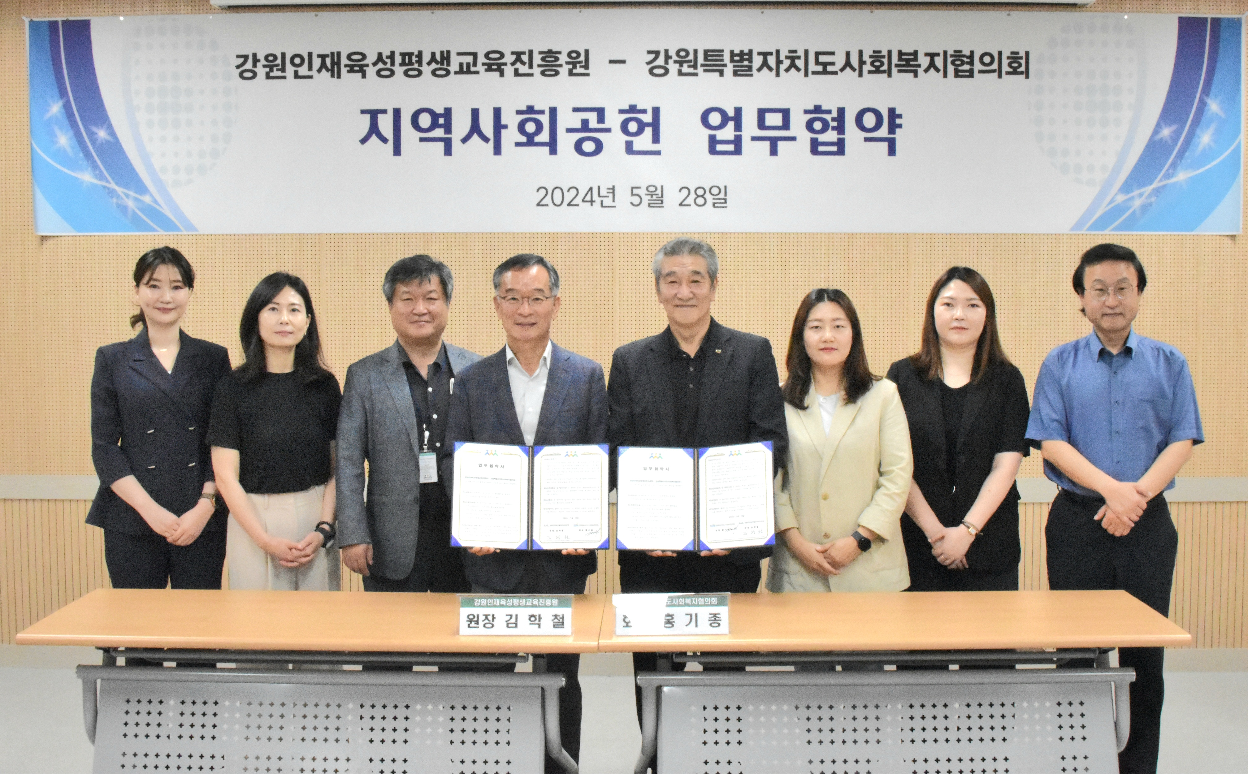 강원인재육성평생교육진흥원(원장 김학철)은 5월 28일, 강원특별자치도사회복지협의회(회장 홍기종)와 업무협약을 체결했다.