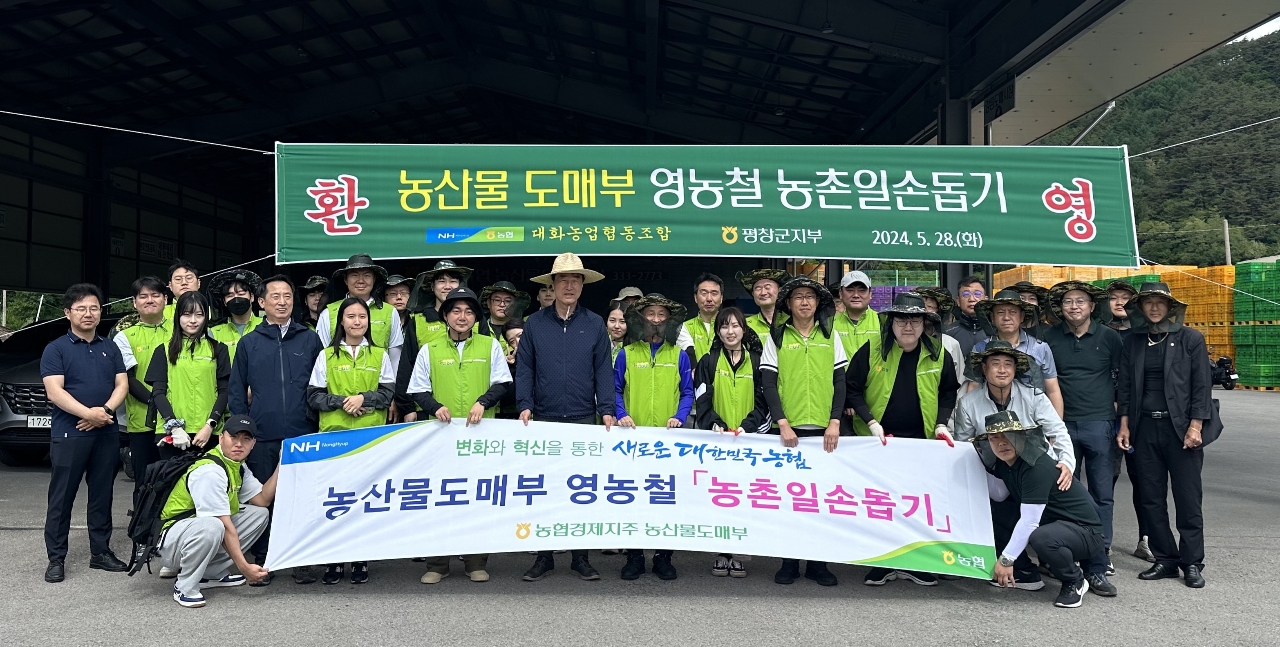 농협경제지주 농산물도매부(부장 박진석), 강원지역본부(부본부장 김남진), 대화농협(조합장 김진복)이 5월 28일 평창군 대화면 대화농협 공선농가를 찾아 농촌일손돕기를 펼쳤다.봉사에 참여한 임직원 70여명은 고추지줏대 설치와 토마토 가지치기에 일손을 보태고, 농가와 간담회를 열어 소득증대 방안을 주제로 이야기를 나눴다. 김진복 조합장은 “앞으로도 농민이 영농활동에 집중할 수 있도록 일손부족 문제에 적극적으로 대응하겠다.”고 말했다.
