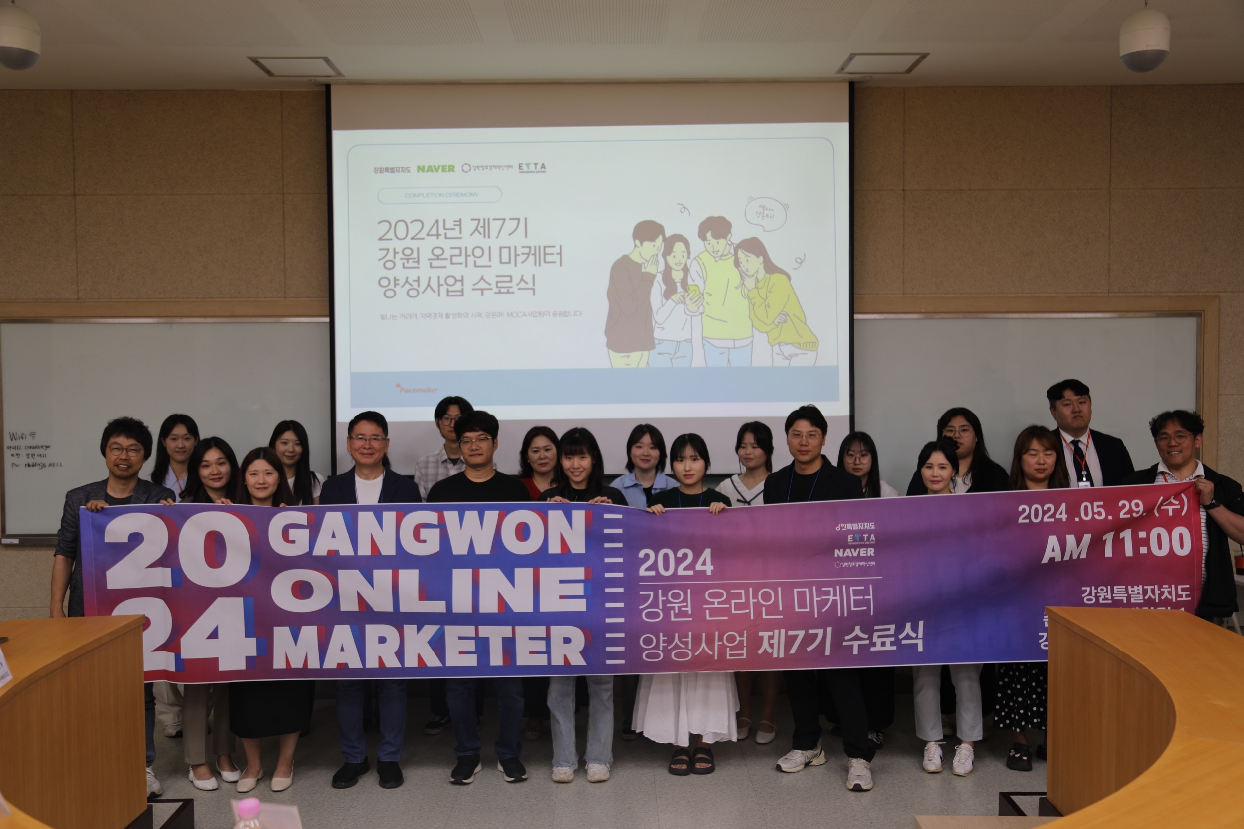 강원특별자치도는 2024년 강원 온라인마케터 양성 과정(7기) 수료식을 5. 29.(수) 강원창조경제혁신센터 대회의실(한림대학교 도헌글로벌스쿨 1층)에서 개최했다.