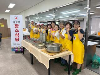 어제(7.1.), 용평면적십자봉사회(회장 박정자) 회원 10여 명은 금송회관에서 장수식당을 운영하여 어르신 100분께 식사를 대접하였다.