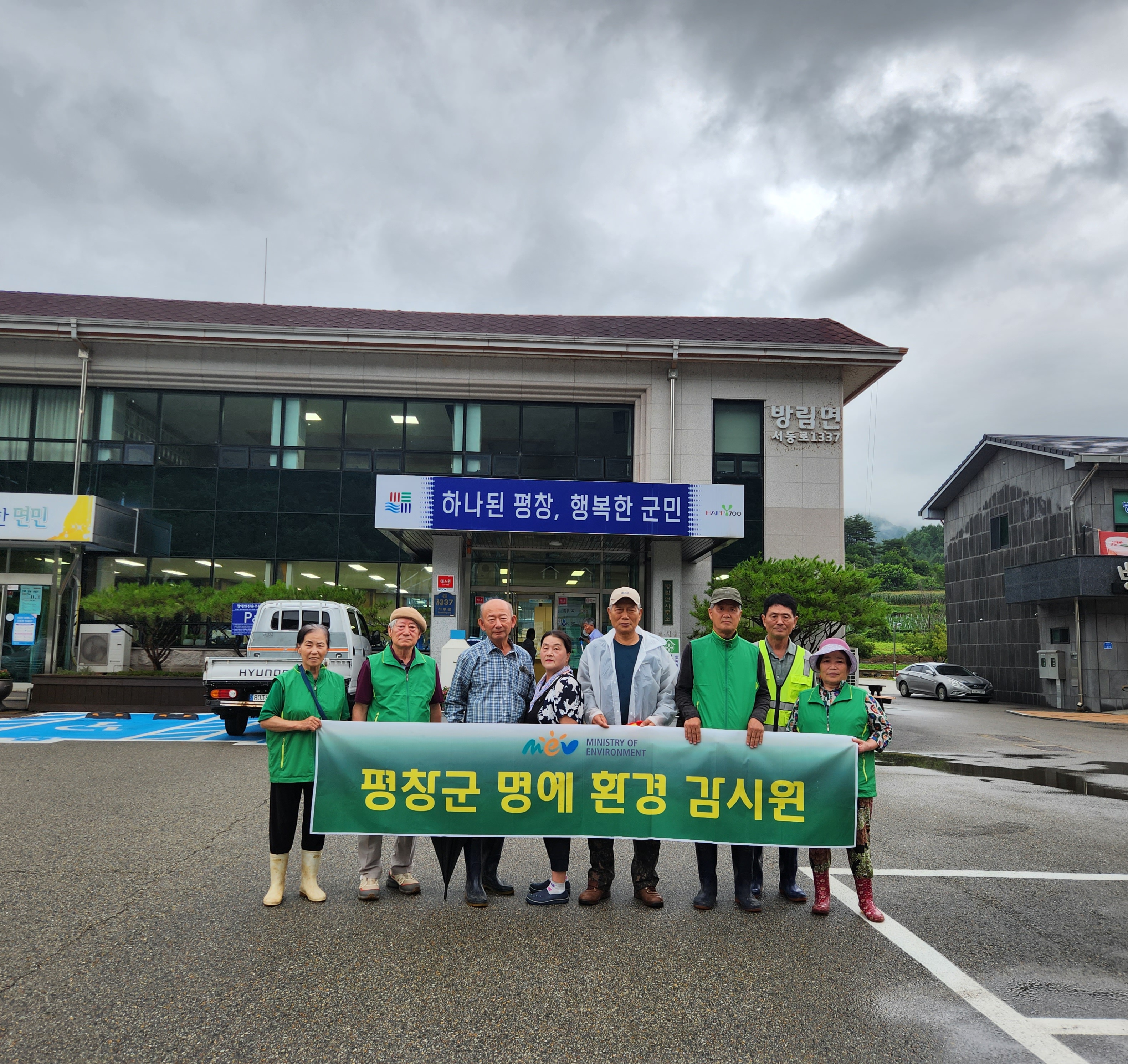 방림면 명예환경감시원은 지역 정화 활동을 위해 2023년 창단한 회원 25여 명이 활동하는 마을 단체로, 올해 계촌 클래식 축제장 환경 정화 활동, 진부면 하천 정화 활동 등 마을 환경 개선을 위해 봉사하고 있다.