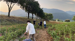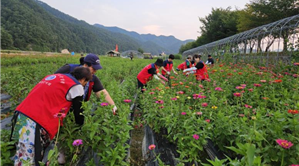 평창읍 사회단체, 평창백일홍축제장 꽃밭 가꾸기 작업 실시