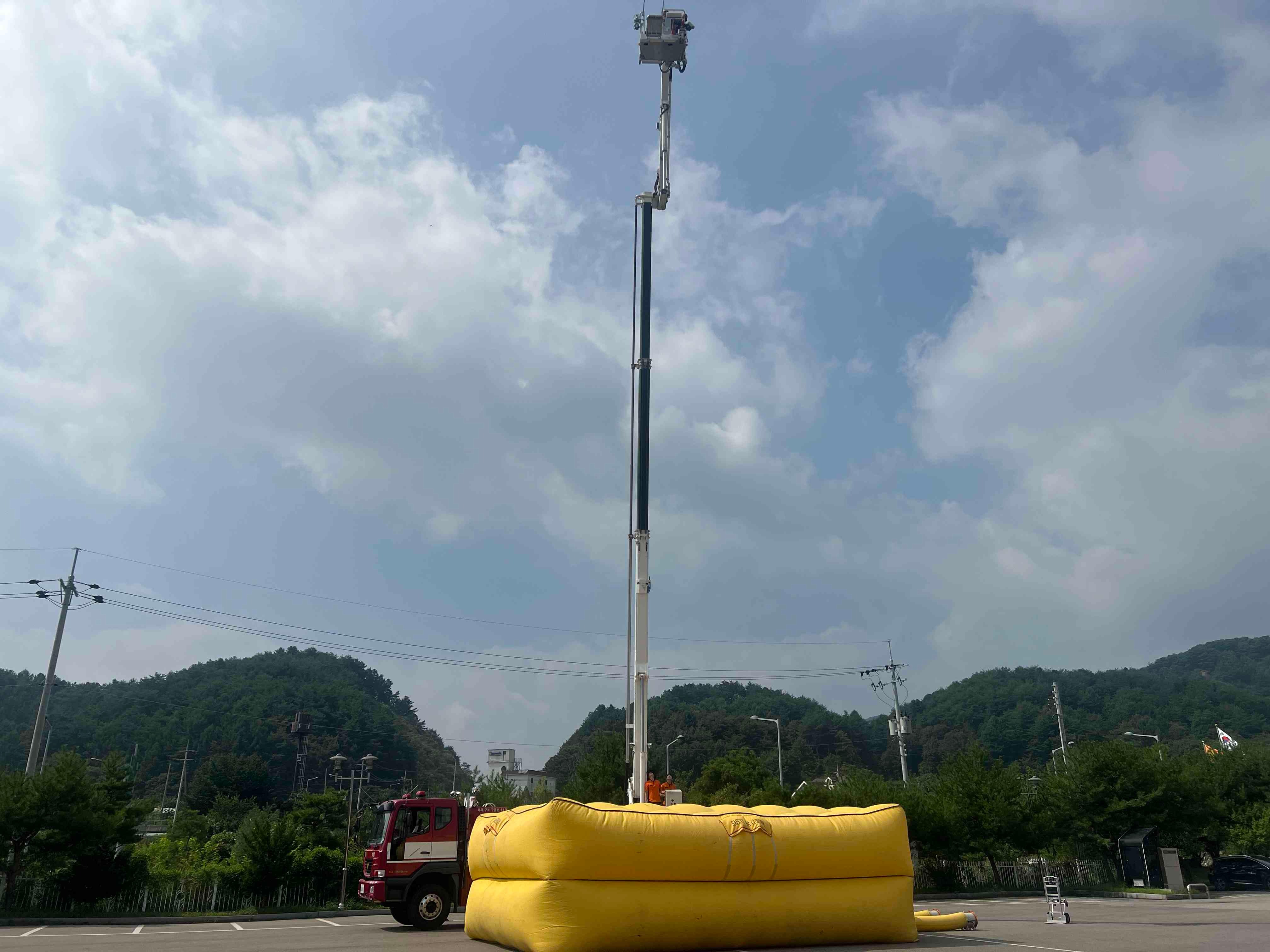 이에 따라 평창센터에서는 보유 장비의 높이를 다르게하여 최대 20m에서 마네킹을 활용한 충격 흡수 훈련을 실시하였다.