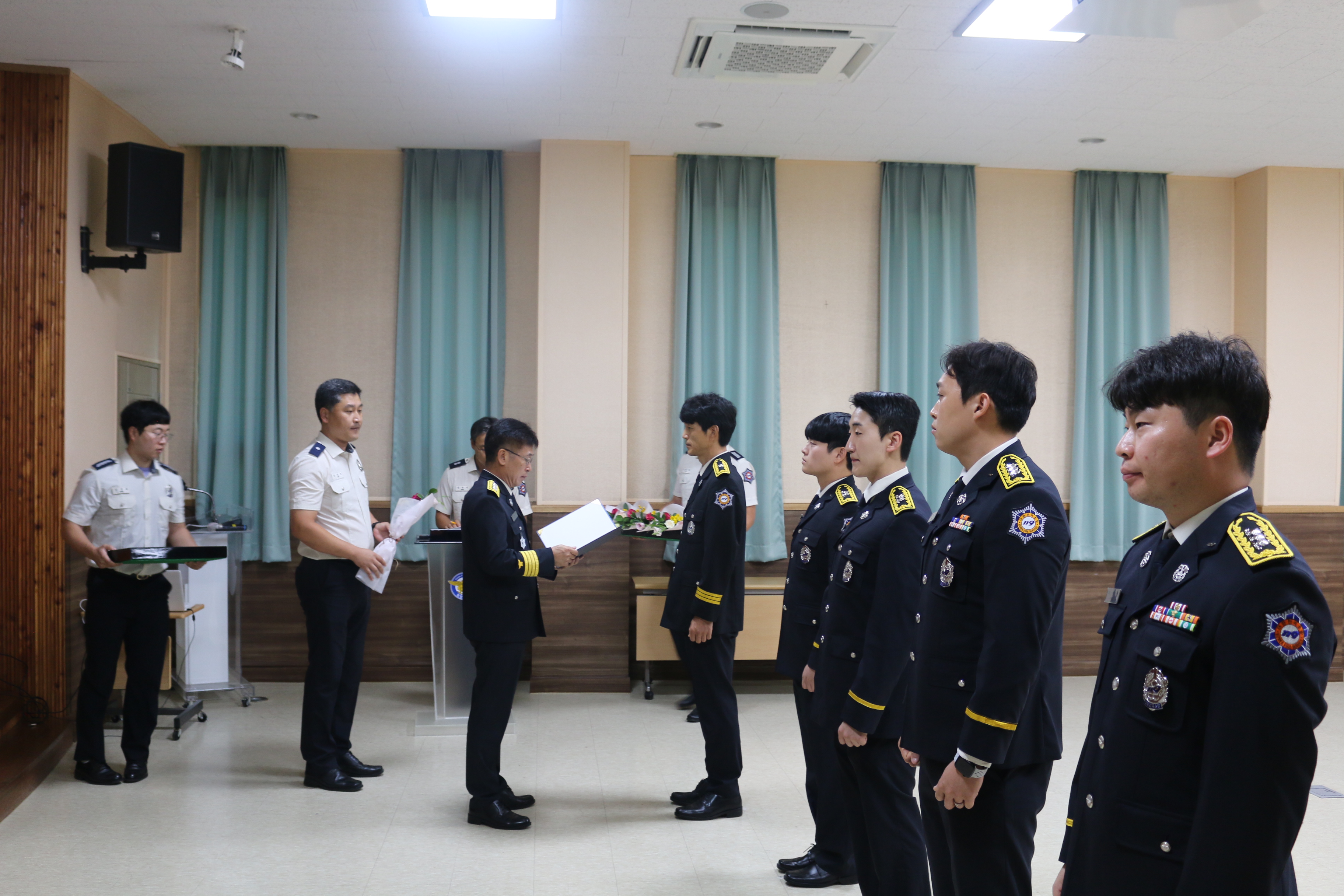 이날 수여식은 평창소방서로 전입한 4명과 자체 인사발령 대상자 1명에 대한 임용장 수여, 환영인사, 기념촬영 순으로 진행됐다.