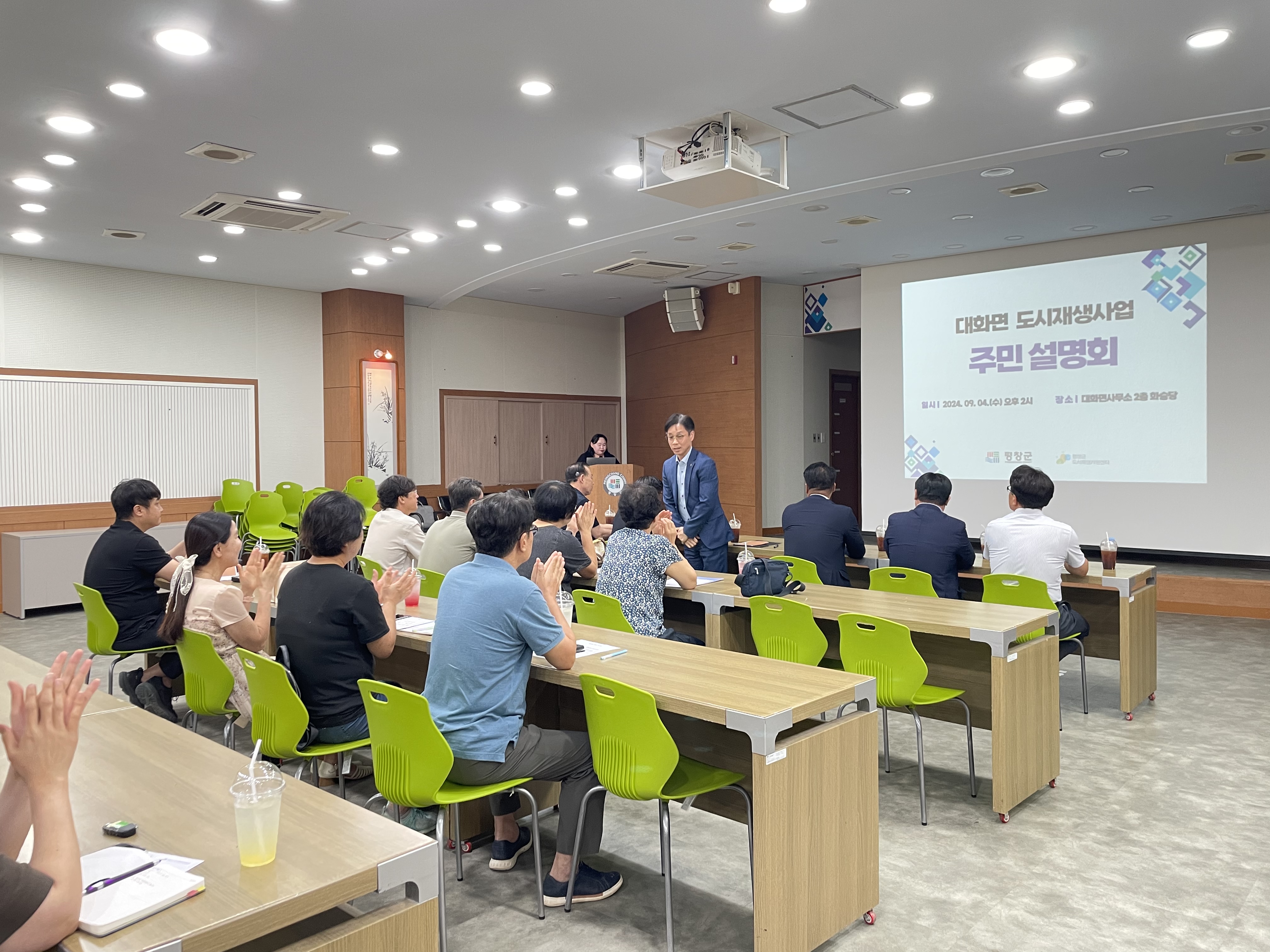 이번 주민설명회에서는 군 도시과가 주관하는 ‘대화면 도시재생사업’과 농업기술센터 농정과가 주관하는 ‘대화면 기초 생활 거점조성 사업’의 전반적인 사업 내용과 추진 경과를 설명하고 주민들의 의견을 수렴하는 시간을 가졌다.