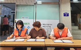 어제(9.3.), 평창읍지역사회보장협의체(위원장 김두기, 박종관)는 관내 자영업체 메밀이야기(대표 안경자)와 우리 동네 나눔 가게 협약을 체결하고 현판식을 진행하였다. 여섯 번째 나눔 가게인 메밀이야기는 판매 수익의 일부를 취약계층을 위해 사용해달라며 8년째 매월 20만원의 이웃돕기 성금을 기탁하고 있어 지역사회의 귀감이 되고 있다.