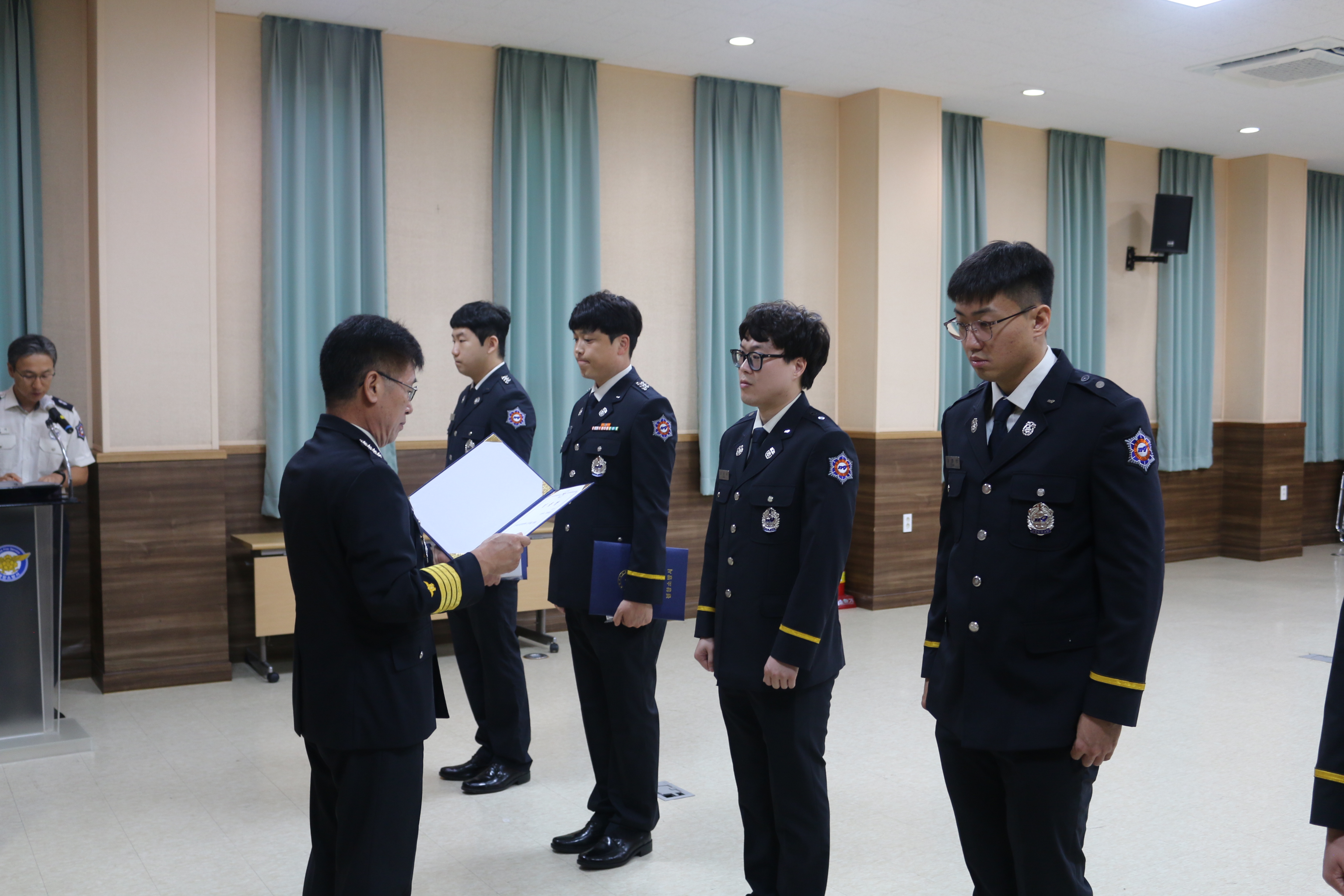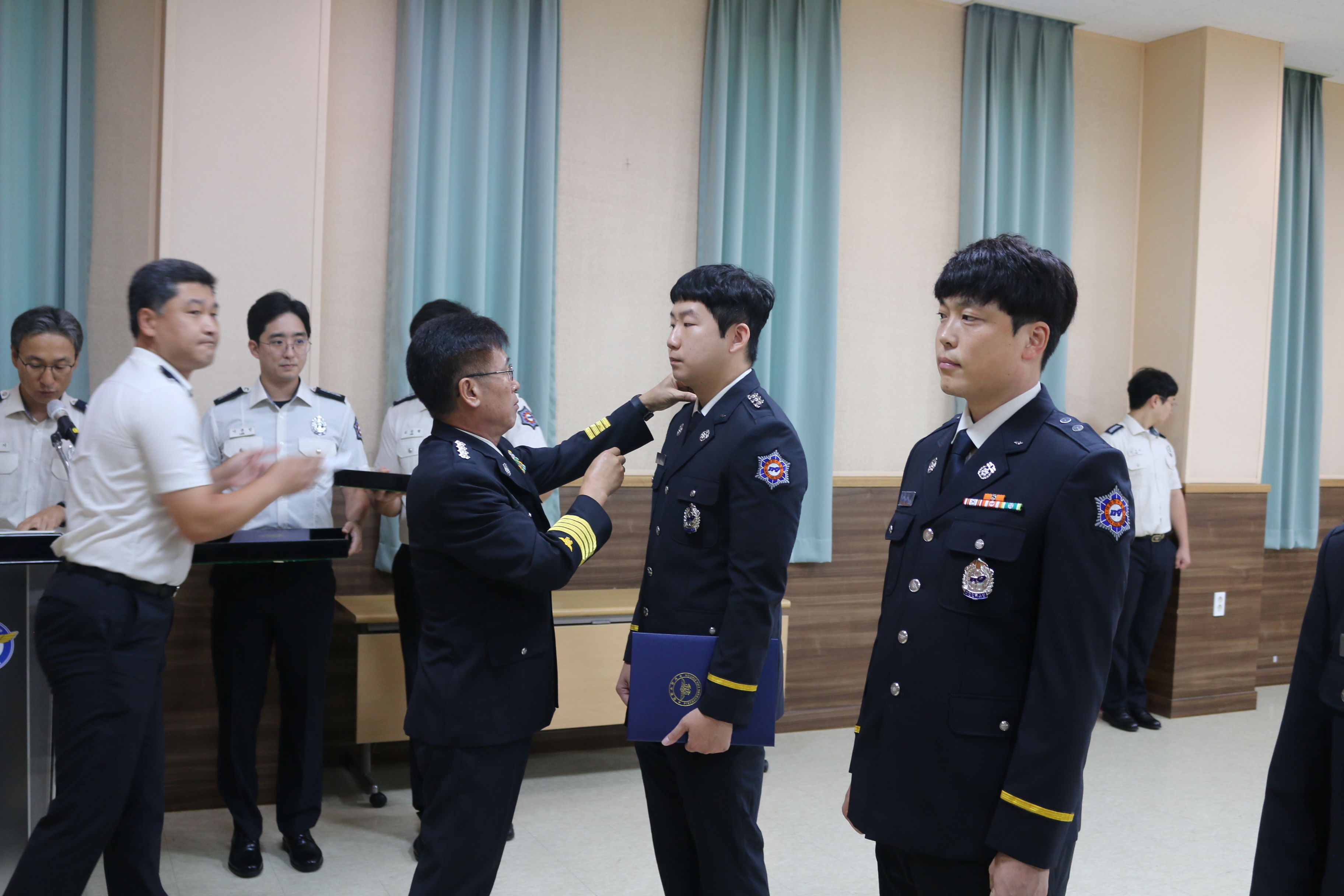 이날 수여식은 소방사에서 소방교로 근속 승진한 대상자 총 6명이다.