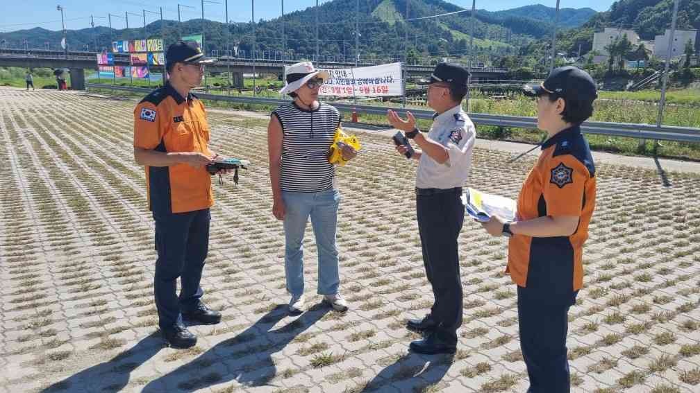 이날 점검 내용은 ▲축제장 안전시설물 상태 점검 ▲행사장 피난동선 확보 여부 및 소방차량 진입로 사전확인 ▲주민 비상대피로 점검 ▲긴근상황 발생시 관계자(주최측) 대응책 강구 및 안전관리 당부 등이다.